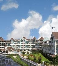 The Disney’s Beach Club Villas are decorated in the pastel colors and wood accents of beach architecture typical of the eastern seaboard, and range from a studio size, which has a kitchenette (includes microwave and small refrigerator) to 1 and 2-bedroom units that include a fully-equipped, full-size kitchen, and in-room washers and dryers.