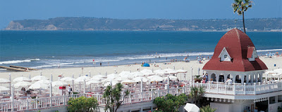 Coronado Beach sits on a peninsula across the bay from San Diego. The town of Coronado has easy access to the mainland and San Diego by way of the Coronado Bay Bridge that gracefully arches cross San Diego Harbor.