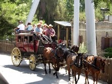 Knott’s Berry Farm is different from Disneyland because it’s made like the old west California Gold Rush Days. There’s a real blacksmith shop where you can get a horseshoe with your name hammered into it and a cowboy stunt show called “Fool’s Gold Stunt Show,” that was really cute and funny. And they even have a real stage coach that is pulled by real horses and we got to ride that.
