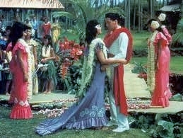 The movie’s approximate final 20 minutes was filmed on Kauai at or near Coco Palms Resort, culminating in the lagoon wedding scene in which Elvis and his fiancé are carried to the chapel in a double-hulled canoe filled beautiful tropical flowers.
