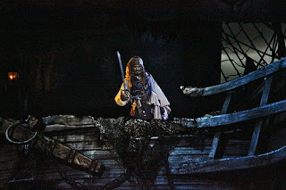 The skull calls for Jack Sparrow to come up from the ship’s cabin and take the lead. With the famous role once again played by Johnny Depp, Jack appears in a most realistic way, believably standing up on the ship’s bow for the remainder of the show.