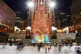 1. New York City, NY (see top photo). One of the most iconic American Christmas lights displays is Rockefeller Center. The towering tree is covered with 30,000 lights, and appears twice as bright as it reflects off the ice of the skating rink.
