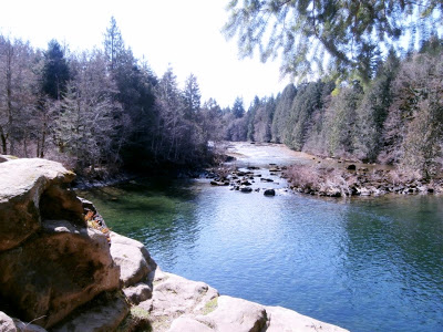 On Vancouver Island, Canada. A spring break hike along the Puntledge River “from Nymph Falls up to the first dam.” Submitted by George Giguere, California.
