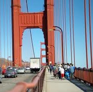 Close enough to touch the welded rivets and to look straight up at the suspension cables, you can try to picture what it would have been like to build this world-famous bridge.