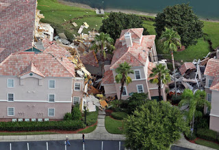 A sinkhole caused a section of the Summer Bay Resort villa, a timeshare resort, to partially collapse early Monday, August 12, 2013.