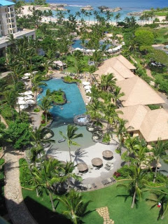 Ko Olina sits on the dramatic western shore of Oahu. We rented a car at the airport (something I highly recommend doing in Hawaii), and drove a short 30 minutes to this island oasis on a secluded beach. Our first impression was of a tropical Hawaiian paradise with shimmering lagoons, waterfalls, fountains and all the vibrant colors and sweet, floral scents of the island!