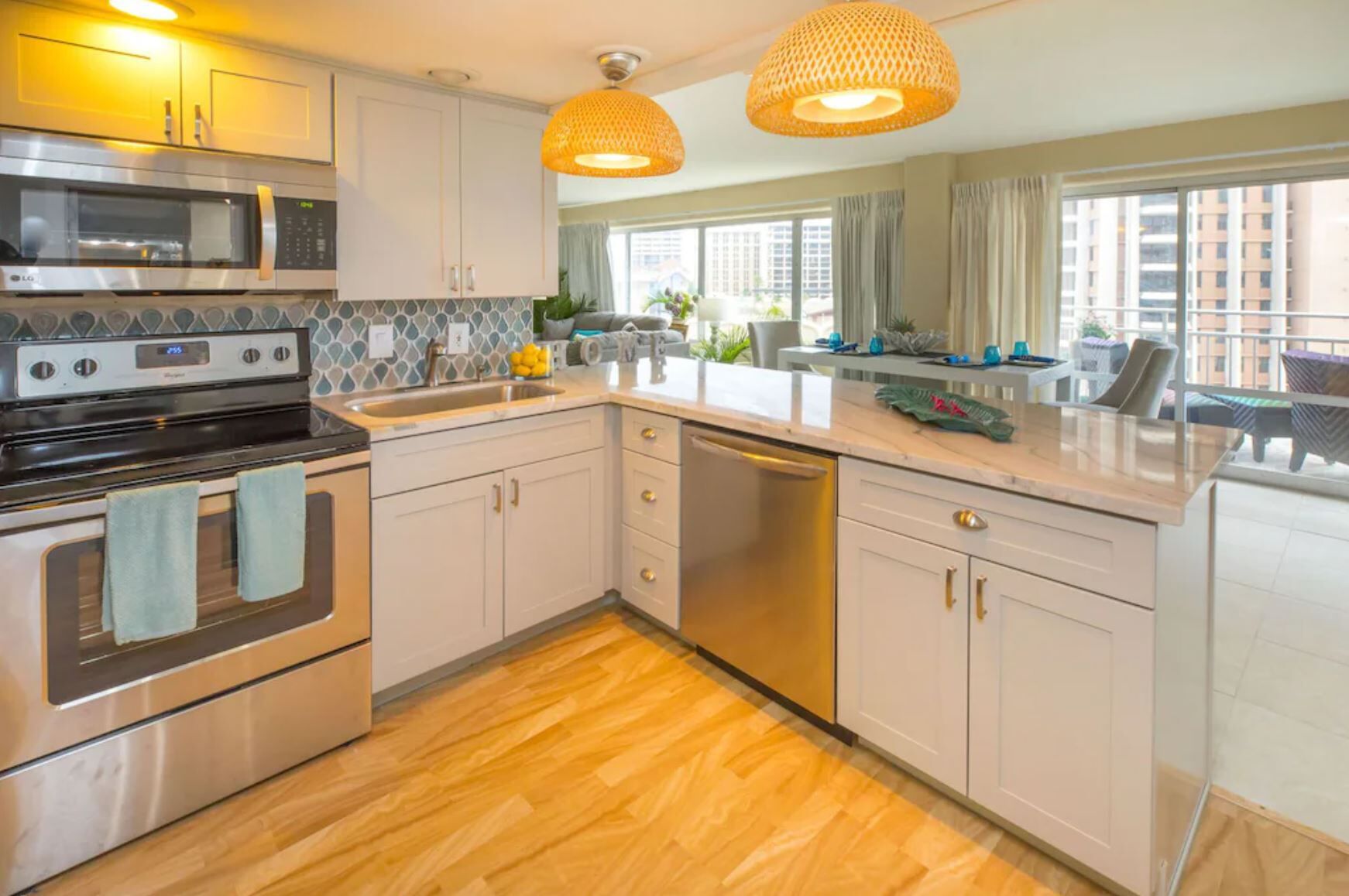 Each and every one of Waikiki Marina Resort's Junior Lanai Suites features a private lanai for relaxing, granite showers, complimentary Internet access, air- conditioning and a fully equipped kitchen for cooking and entertaining. Suites offer a king-size bed in the bedroom and a queen-size sleeper sofa in the living room. Complimentary high-speed wireless internet access helps you stay connected all vacation long.