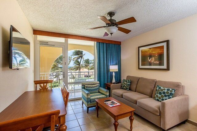La Cabana's accommodations feature partial kitchens in all units, private fully-furnished balconies, complimentary Wi-Fi, and exclusive Aruba Aloe bath amenities. Each unit also includes air-conditioning, tile flooring, and two 42-inch flat screen televisions, with tasteful local artwork depicting Aruba's culture and history. Options range from spacious two-bedroom oceanfront suites with enough room for up to eight guests to studios suited for up to four.