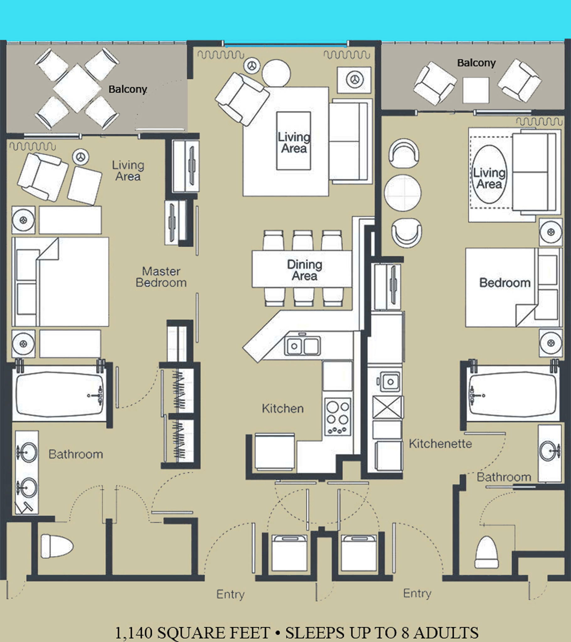 The resort’s villa-style accommodations are designed for comfort and convenience, featuring kitchenettes or full kitchens, spacious living and dining areas, flat-screen TVs, and washer/dryers. Private balconies with ocean views and Westin’s signature Heavenly Beds ensure a restful stay. Larger units with multiple bedrooms make the resort ideal for families and groups seeking extra space while still enjoying the comforts of home.