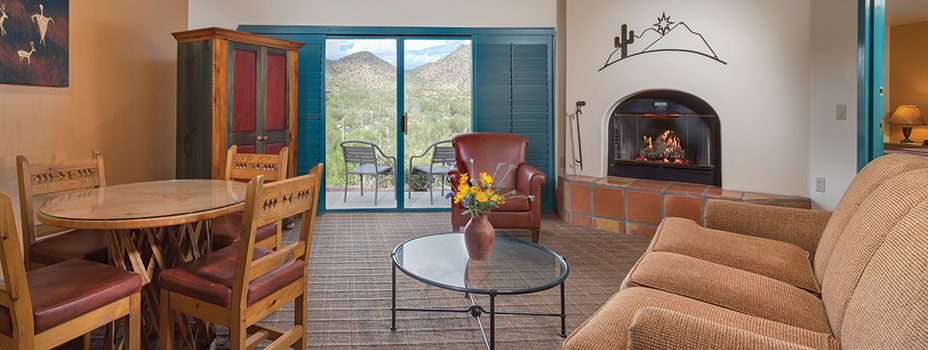 Designed to harmonize with the Sonoran foothills, Starr Pass Golf Suites' studio, one-bedroom and two- bedroom suites feature stylish, upscale touches like open beam ceilings, Mexican tile floors and desert views. Studios include a kitchenette and the essentials such as cable TV, AM/FM alarm clock and Wi-Fi access. The larger suites offer more room to stretch out, with a full living room, dining room, king-size bed and private balcony in addition to extra touches like fireplaces and in-suite washer/dryer in the two-bedroom suites.