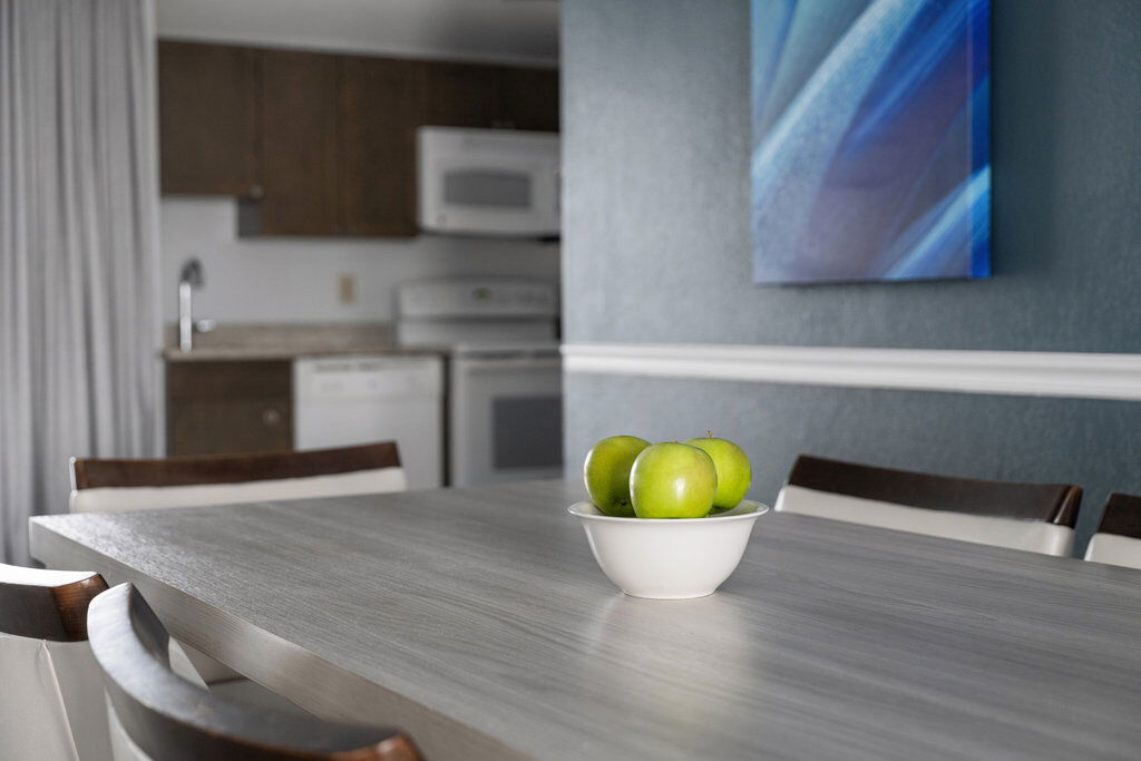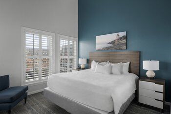 Spacious one- and two-bedroom suites at Newport Onshore feature full kitchens, separate living and dining areas, private bedrooms, and balconies with harbor or city views. Modern touches such as free Wi-Fi, flat-screen TVs, and in-unit laundry add convenience, while warm coastal décor creates a welcoming atmosphere. With plenty of room for families or groups, these suites offer all the comforts of home in the heart of Newport.