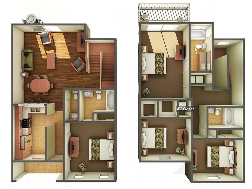 You're sure to feel right at home in Regal Palms' ultra-spacious, three-bedroom and four-bedroom villas and townhomes. Each and every luxe unit is fully furnished with many modern conveniences, including fully-equipped kitchens and in-unit washers and dryers. Guests will also enjoy upscale additions like flat- screen TVs, outdoor terraces and complimentary Wi-Fi access. While these accommodations may feel just like home, tropical touches like bamboo and rattan furniture and bright, warm tones serve to remind you you're vacationing in one of America's favorite destinations.