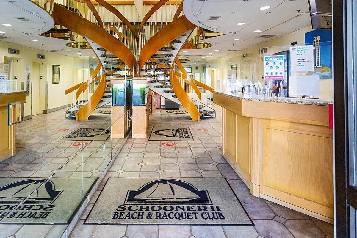 Schooner II Beach & Racquet Club is within easy reach of all the entertainment spots, amusement parks, shopping, and restaurants of Myrtle Beach, a year-round vacation area. Theaters include The Gatlin Brothers, Alabama, Carolina Opry, Legends in Concert, and Dixie Stampede. There are more than 1,700 restaurants in the area, including Hard Rock Cafe, Gilley's NASCAR Cafe, and Planet Hollywood. There are more than 90 championship golf courses. The beach is just steps from the resort, and units offer stunning views of the ocean. Free racquetball, outdoor pool (covered in the winter months), exercise room, and sauna are available.