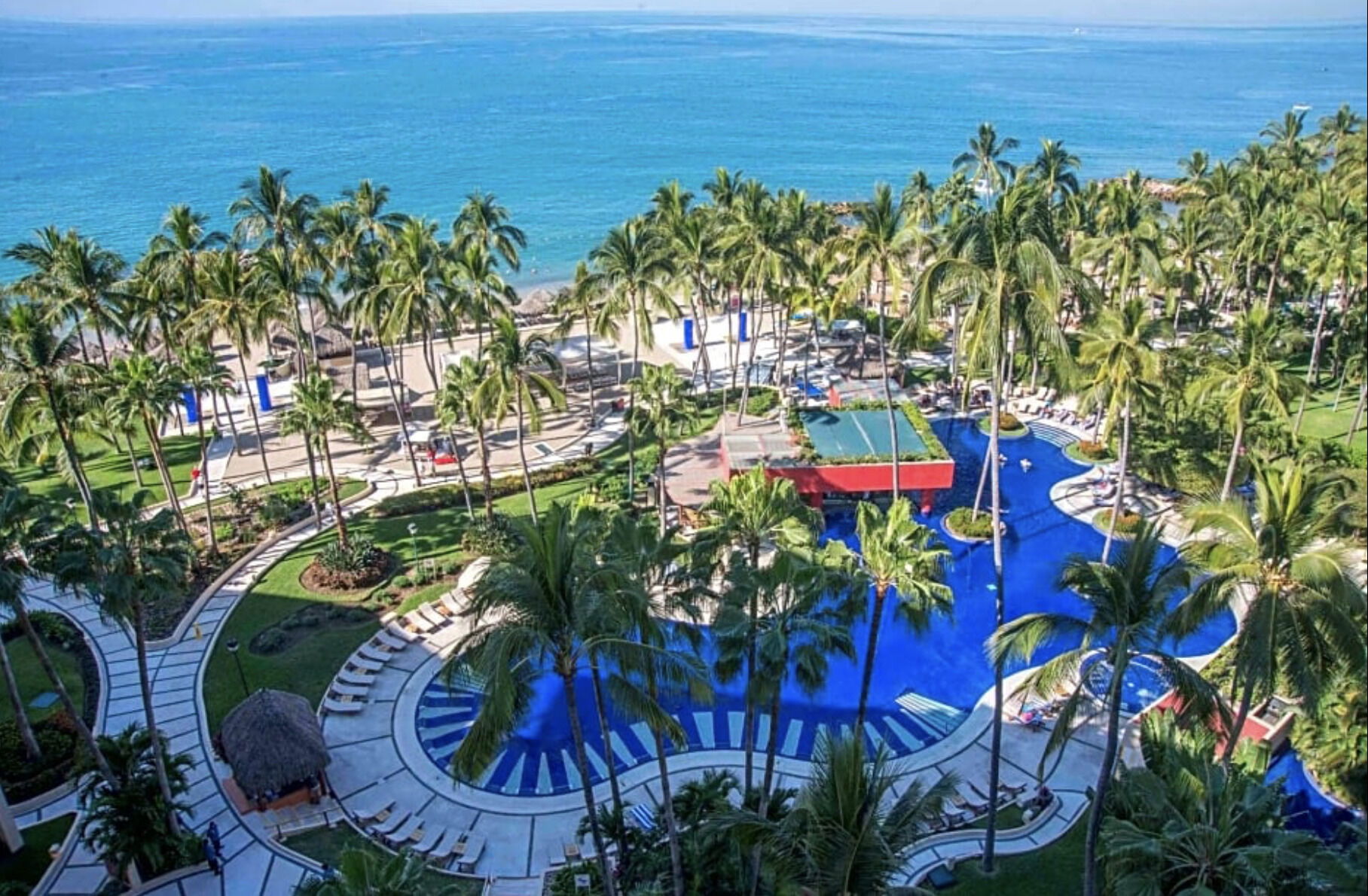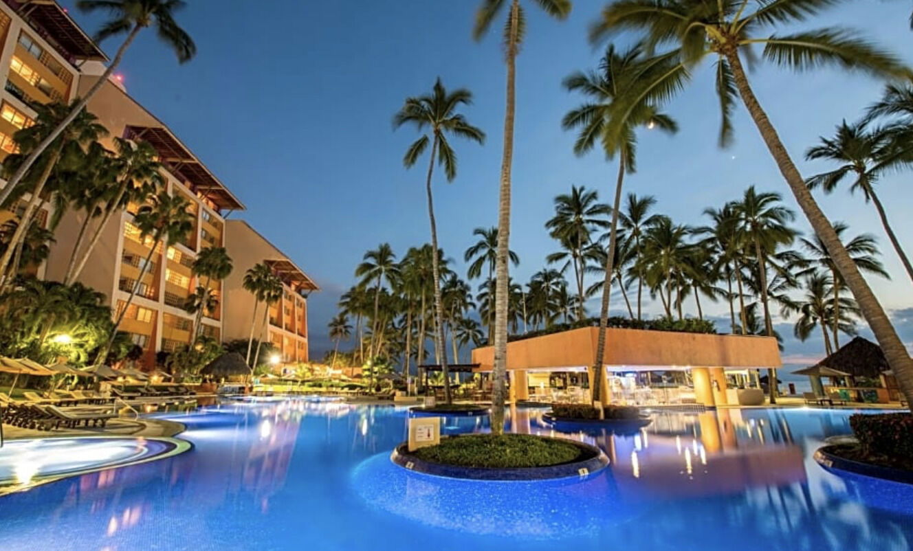 Club Regina Puerto Vallarta is a vibrant, family-friendly resort set beachfront in the Marina Vallarta area, where the Sierra Madre Mountains meet the Bay of Banderas. The resort offers lush tropical landscaping, a large free-form outdoor pool area with a swim-up bar, a children’s pool, poolside lounging with umbrellas, and beach volleyball on a small protected beach. On-site dining includes multiple restaurants and bars, while convenience comes from amenities like a mini-market and lobby cafe.