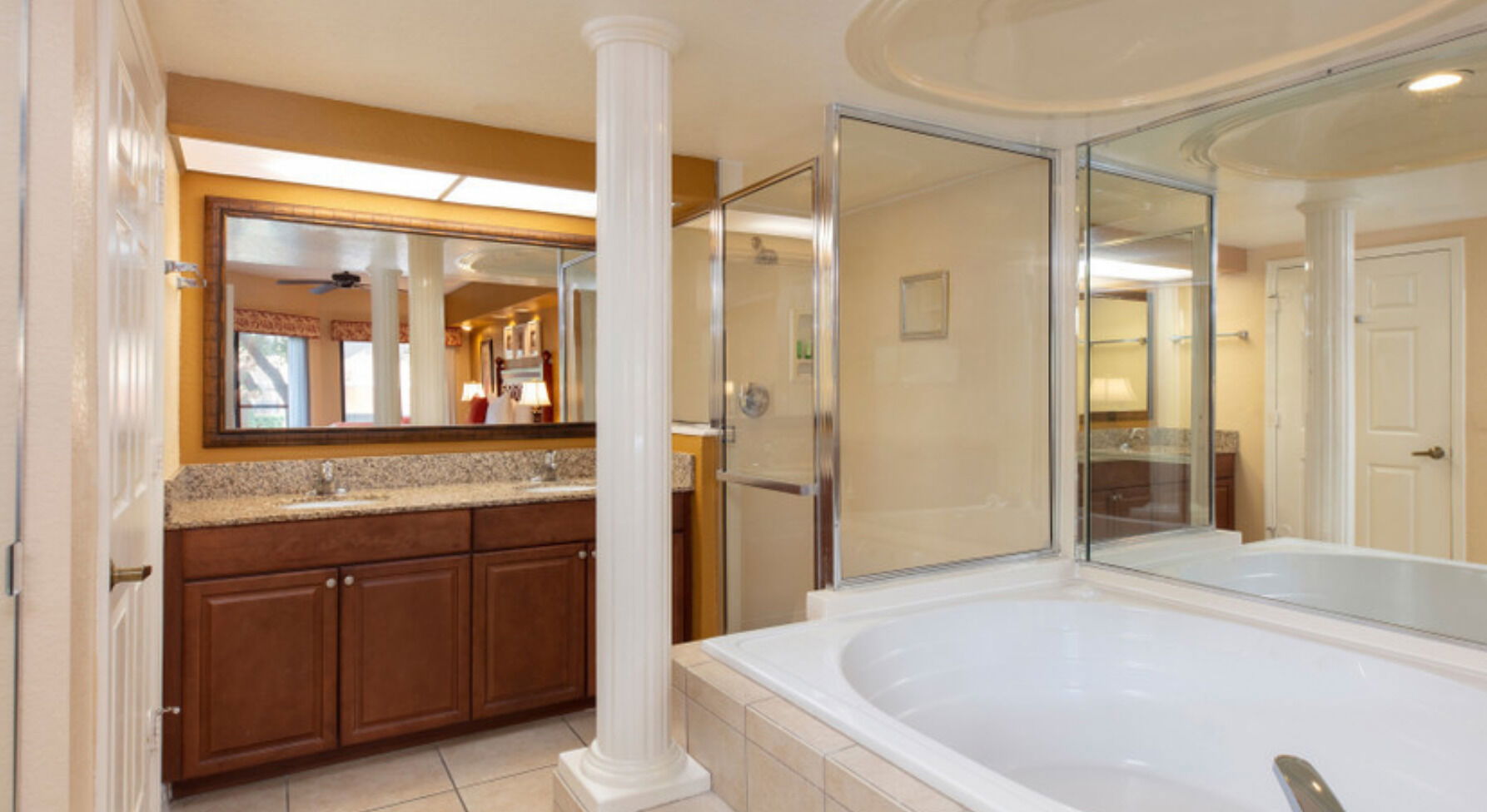 Westgate Lakes Resort & Spa offers roomy studio villa units and spacious one-bedroom, two-bedroom, three-bedroom, four-bedroom, or five-bedroom villas that are capable of sleeping up to eighteen! All timeshare villas include a plasma-screen TV with premium channels in the living area and master bedroom, private terrace and in-villa washer/dryer. Some villas feature fully equipped kitchens, whirlpools bathtubs and walk-in showers.