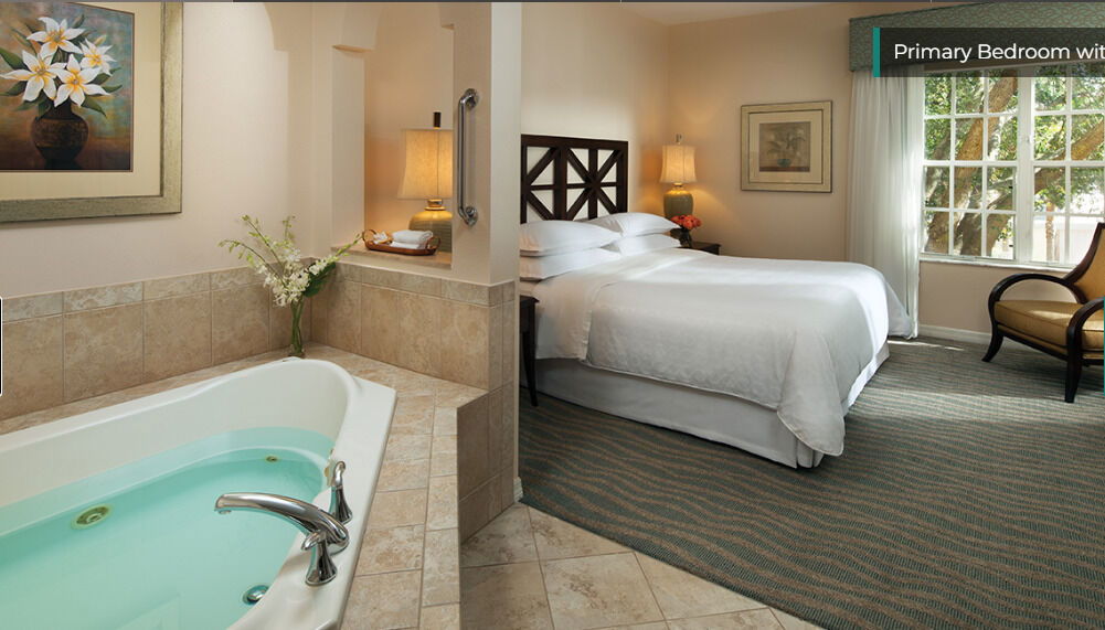 Ultra-spacious and extra-luxe accommodations define your stay at Sheraton Vistana. Offered in several different layouts and configurations, selecting the perfect fit for you group is easy - a flexible two-bedroom lock-off, and one-bedroom and two-bedroom units are available. Whichever you opt for, your timeshare villa will be fully equipped with a full kitchen, in-villa washer/dryer, whirlpool tub in master bedroom and private patio or balcony from which to enjoy the fresh air.