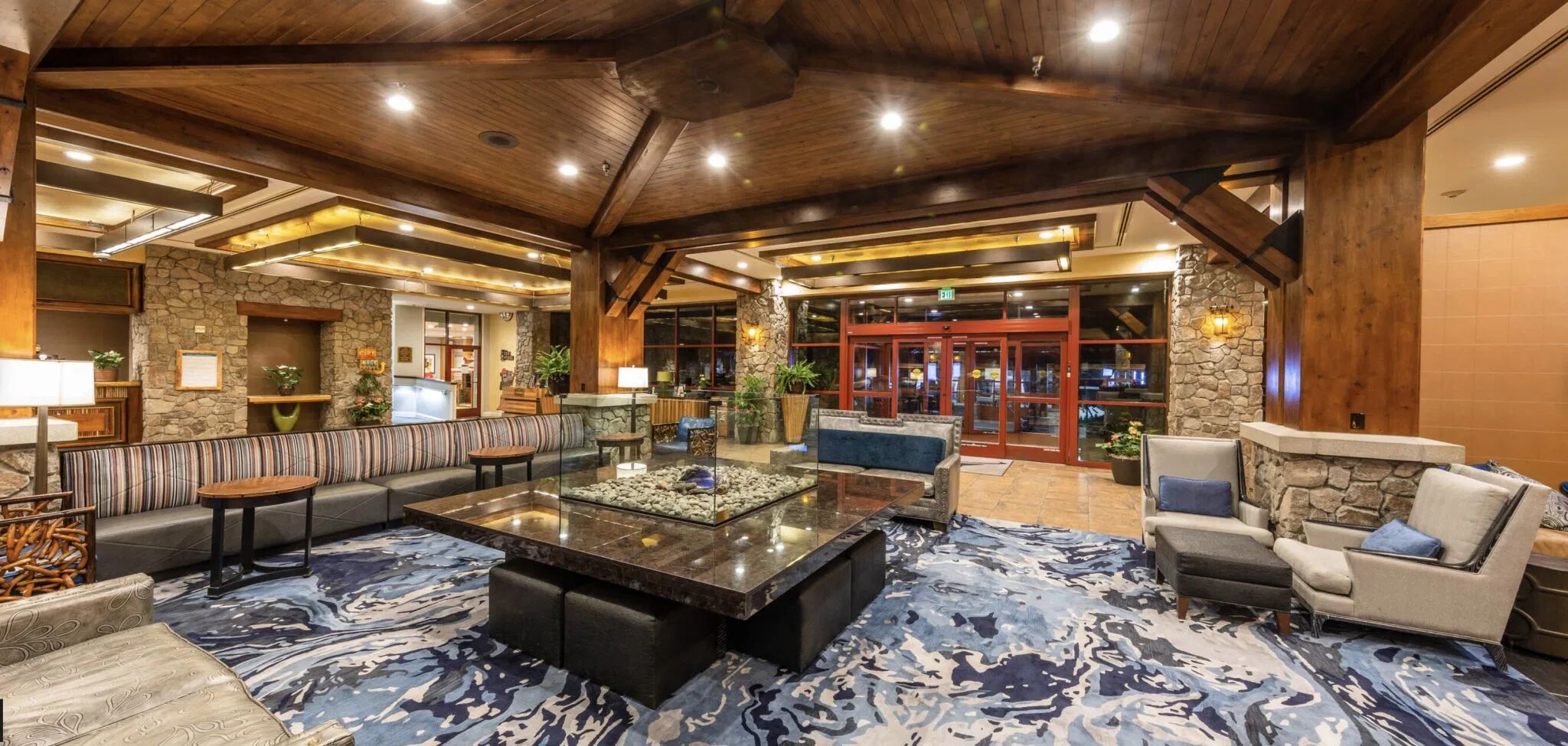 Marriott's Timber Lodge Tahoe is located in the heart of aptly-named Heavenly Village, home to many shops, restaurants, and businesses. Wander the heated cobblestone sidewalks, pass under wooden archways, stop at one of the open bonfire pits to warm up, or experience a live concert. Of course, you're mere steps away from Heavenly Mountain Resort, with several other ski resorts in the area as well! If you're visiting in the summer, enjoy water sports on the lake or hiking and biking through several scenic mountain trails!