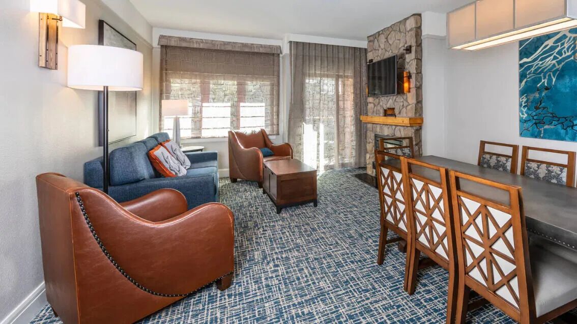 Marriott's Timber Lodge offers sophisticated one, two and three-bedroom villas complete with full kitchens, separate living and dining areas and in-room washer and dryer. Step out onto your villa's private balcony and enjoy the breathtaking views or head back inside to sit in, light a cozy fire and curl up in from of the flat-screen TV for a movie. Or, after a long day working your muscles on the slopes, take a dip in the whirlpool bathtub. Studio units are also offered if you're seeking smaller and more compact accommodations!