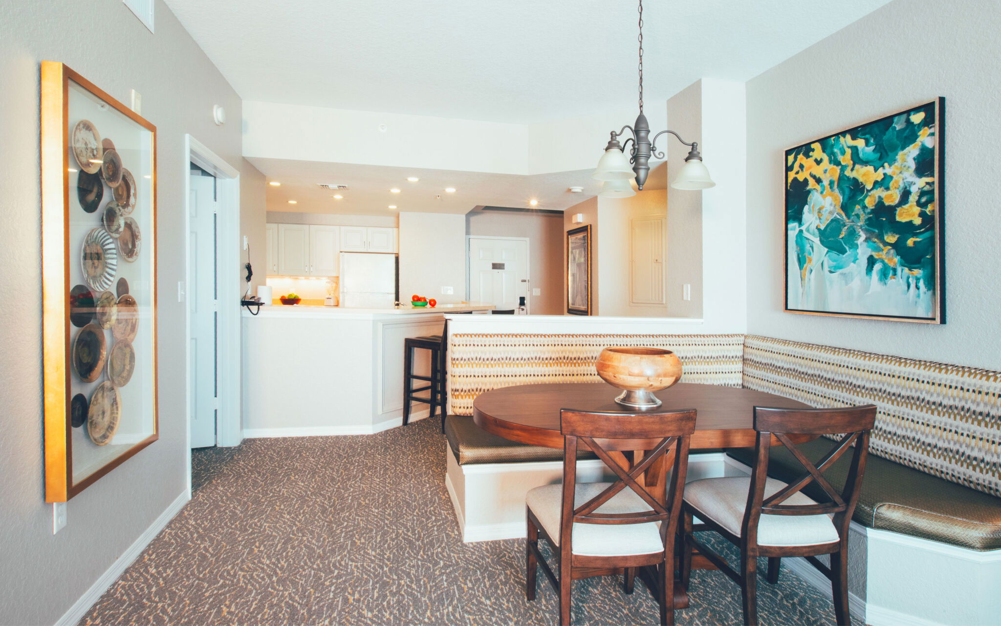 The units are Orange Lake's West Village are the perfect retreat during your Florida vacation, and a multitude of unit sizes and configurations ensure you'll find the right fit for your group. One-bedroom villas sleep four and feature a king-size bed and sleeper sofa. Two-bedroom villas sleep eight and feature a king-size bed in the master bedroom, two queen-size beds in the guest bedroom, and a queen sleeper sofa in the living area. Three-bedroom villas sleep twelve and feature a king-size bed in the master bedroom, queen bed in the second bedroom, two queen-size beds in the third bedroom, and two sleeper sofas. All villas are equipped with a full-size kitchen, TVs in living room and bedrooms, in-suite washer/dryer and more.