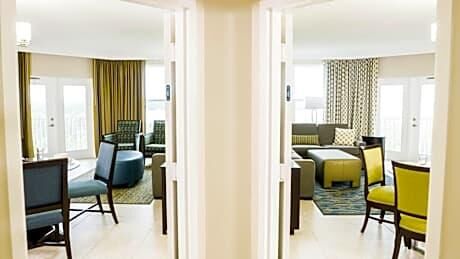 Vacation Village at Parkway features seven pools, seven hot tubs, two childrens' pools, exercise facilities and three nature trails. Vacation Village offers beautiful suites featuring a common foyer with separate controlled access for each suite, dual-access bathrooms, "A" units with a oversized tub and walk-in shower, a large screen television and CD stereo system, additional color television in bedrooms, separate climate-control feature in each suite, individual living and dining rooms in each suite, king bed and sofa bed in suite A, queen bed and sofa bed in suite B, fully appointed kitchens and balconies or patios with a tropical flair!