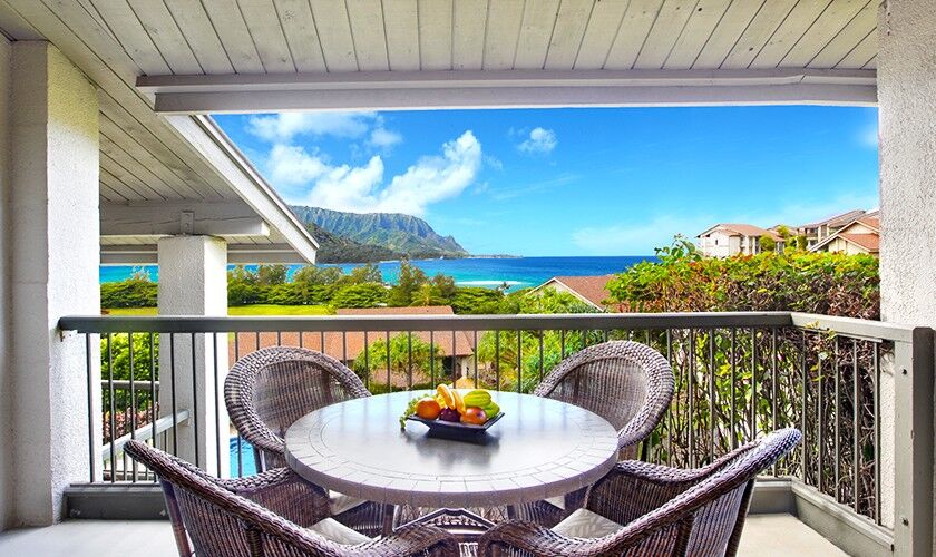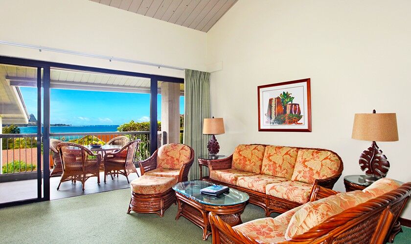At Hanalei Bay Resort, you can choose from one-bedroom or two-bedroom suites. All units are bright and stylish, and include full kitchens, dining areas, air-conditioning, Wi-Fi access, a TV and a private lanai.One-bedroom suites are best suited for up to four guests, while two-bedrooms offer even more room to spread out, sleeping up to six individuals.