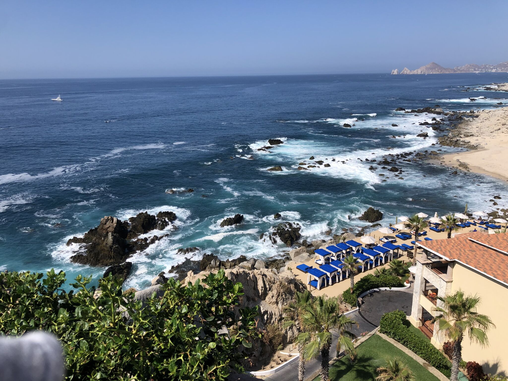 The resort is built on a cliff overlooking the Sea of Cortez with breathtaking views of the famous Land’s End arch to the right, and the San Jose coastline to the left, and during the winter, California grey whales as they frolic in the warm waters with newborn calves.