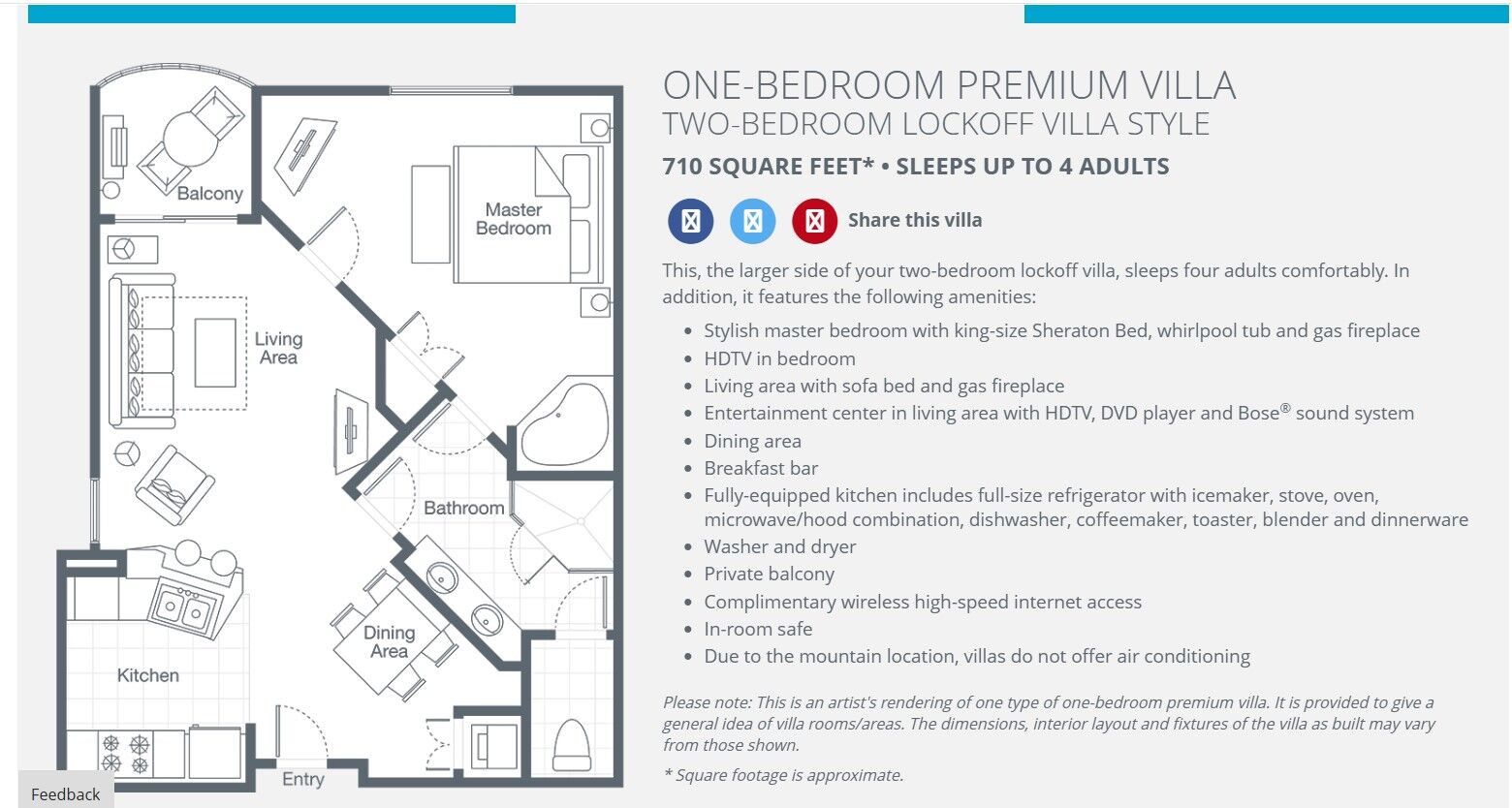 Due to the mountain location of the resort, villas do not include air conditioning.A housekeeping fee of up to $88 (subject to change) may apply on certain two week, lockoff units depending on how the reservation was booked. Please contact the owner directly for additional details.Interested in this posting?