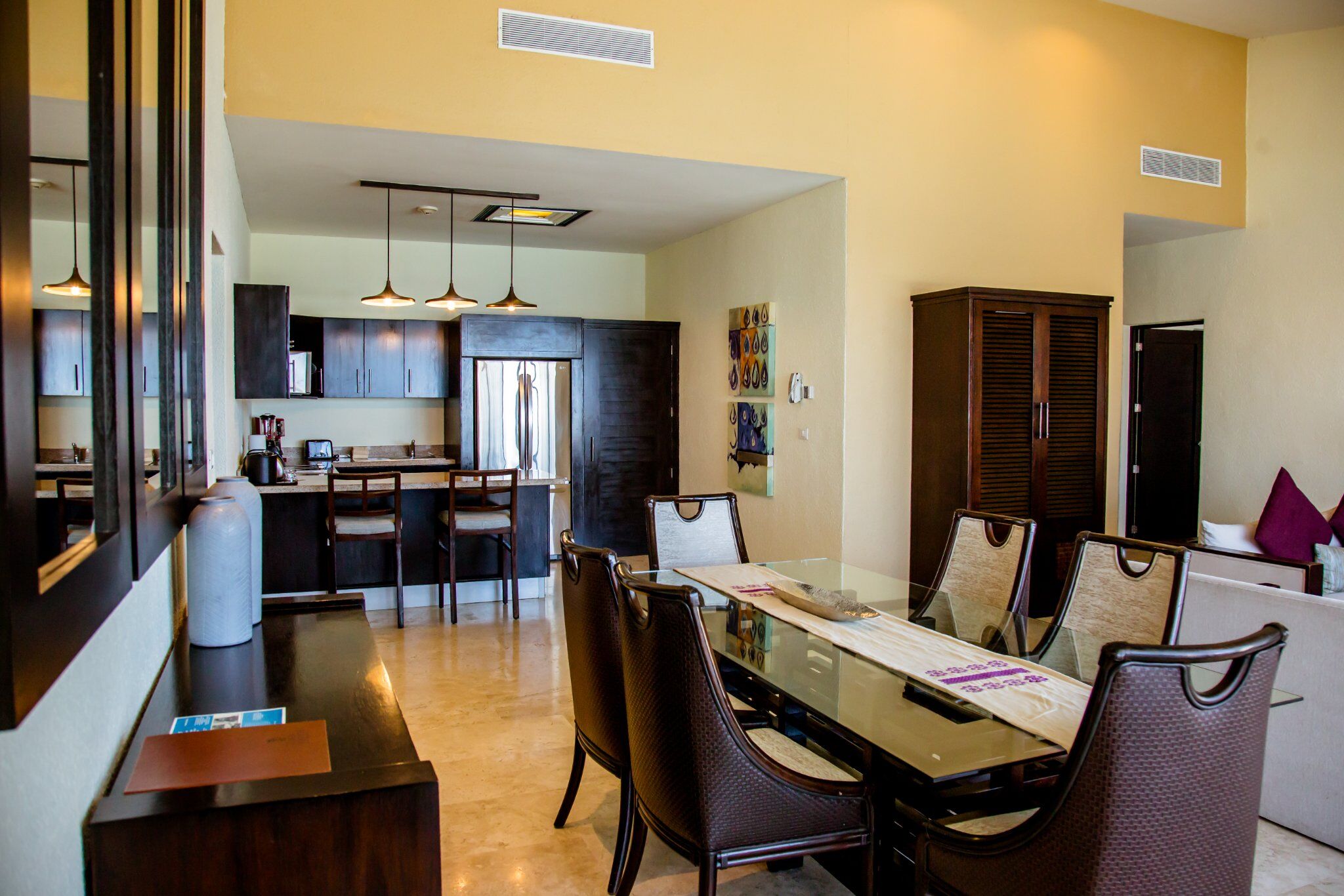 All of the suites at Casa Dorada are inspired by the stark grandeur of the desert - pale earth tones and sleek lines. Suite sizes range from one to three bedrooms, with the one-bedroom Junior suites including the essentials like a master bedroom, kitchenette, separate living area, flatscreen plasma TV's, Wi-Fi access and oceanview terrace. Two bedrooms come with a bit more - full kitchen, separated living and dining areas and Jacuzzi tubs. The exquisite three-bedroom suites include everything offered by the two-bedroom as well as vaunted, high ceilings, fine woods, marble bathrooms and sprawling terraces with breathtaking ocean views.
