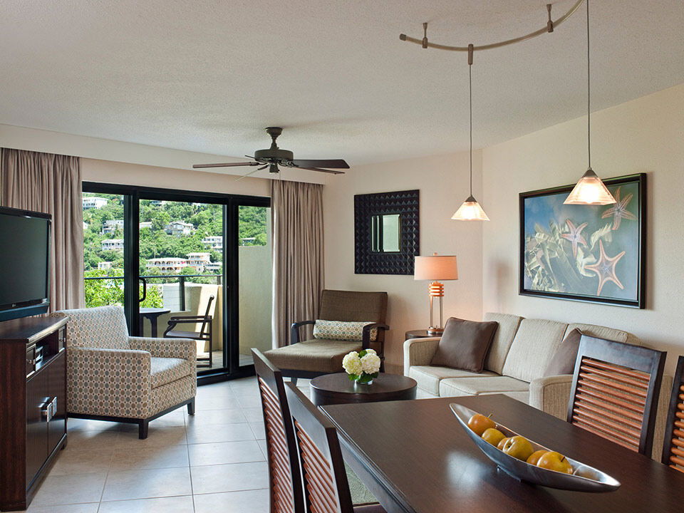 The Virgin Grand Villas offer from studio to three-bedroom units. Immediately beside each villa building is a 600 square foot pool with waterfall for use by villa guests only. The deck surrounding the pool has lounge chairs, pool floats, plus two commercial- grade, stainless steel gas grills for outdoor cooking. The three-bedroom Virgin Grand Villa condominiums feature private pool and patio.