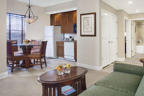 Winding throughout Sheraton Vistana Villages are spacious one-bedroom and two-bedroom timeshare villas. Offering all the luxuries of a resort home, villas are equipped with a full kitchen, whirlpool in the master bathroom, TV with DVD player and private balcony or patio. These sleek and modern villas are also outfitted in bright colors, glossy woods and premium linens that evoke the sun-soaked spirit of Florida. And of course, all villas feature complimentary Wi-Fi access.