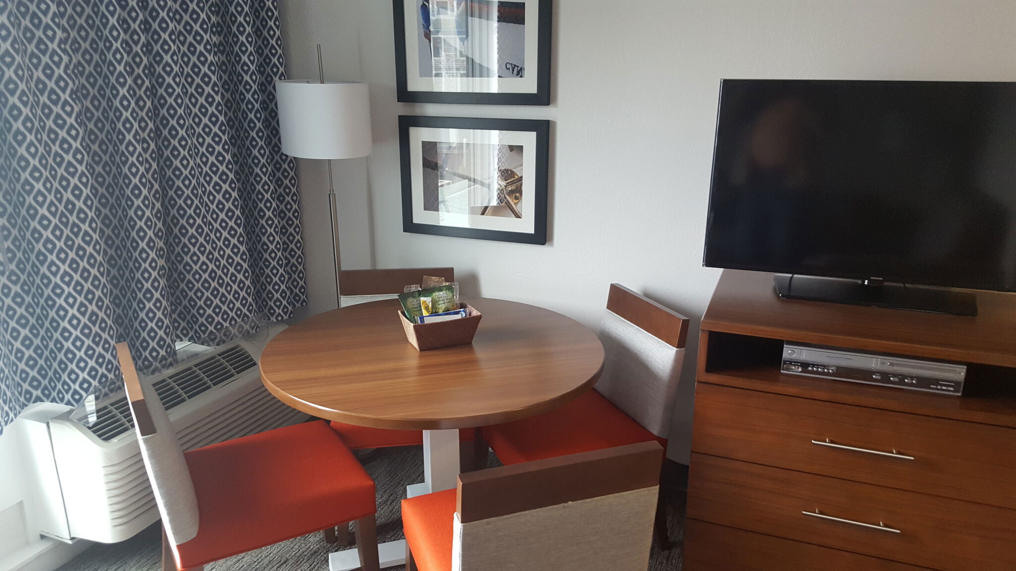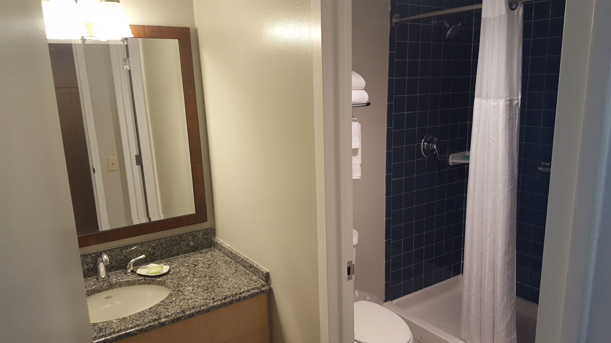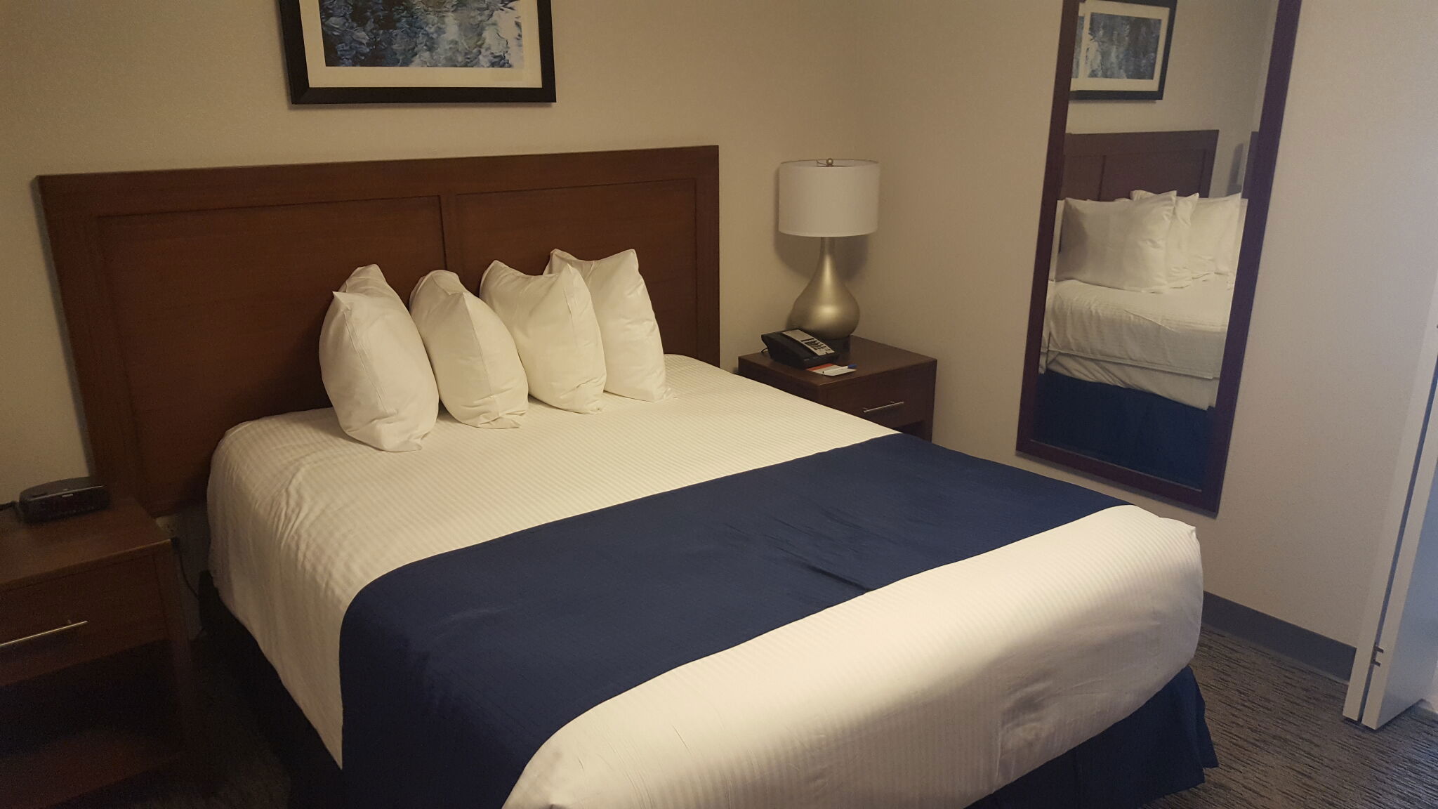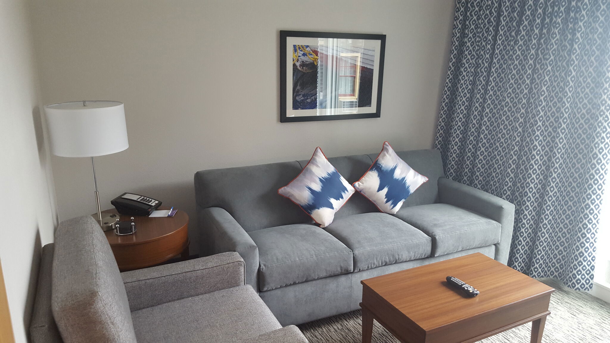 The suites are one-bedroom condos designed to feel like a comfortable home by the water. Each one has a queen bed in a private bedroom, a queen sleeper sofa in the living area, and a kitchenette outfitted with refrigerator, microwave, dishwasher, coffee & tea maker, toaster, and flatware. Some older units also include a cooktop. A dining area, flat-screen TV, DVD player, and free Wi-Fi round out the essentials. Some top-tier deluxe suites offer harbor or city views. The space ranges from about 480 to 600 square feet and accommodates up to four guests.
