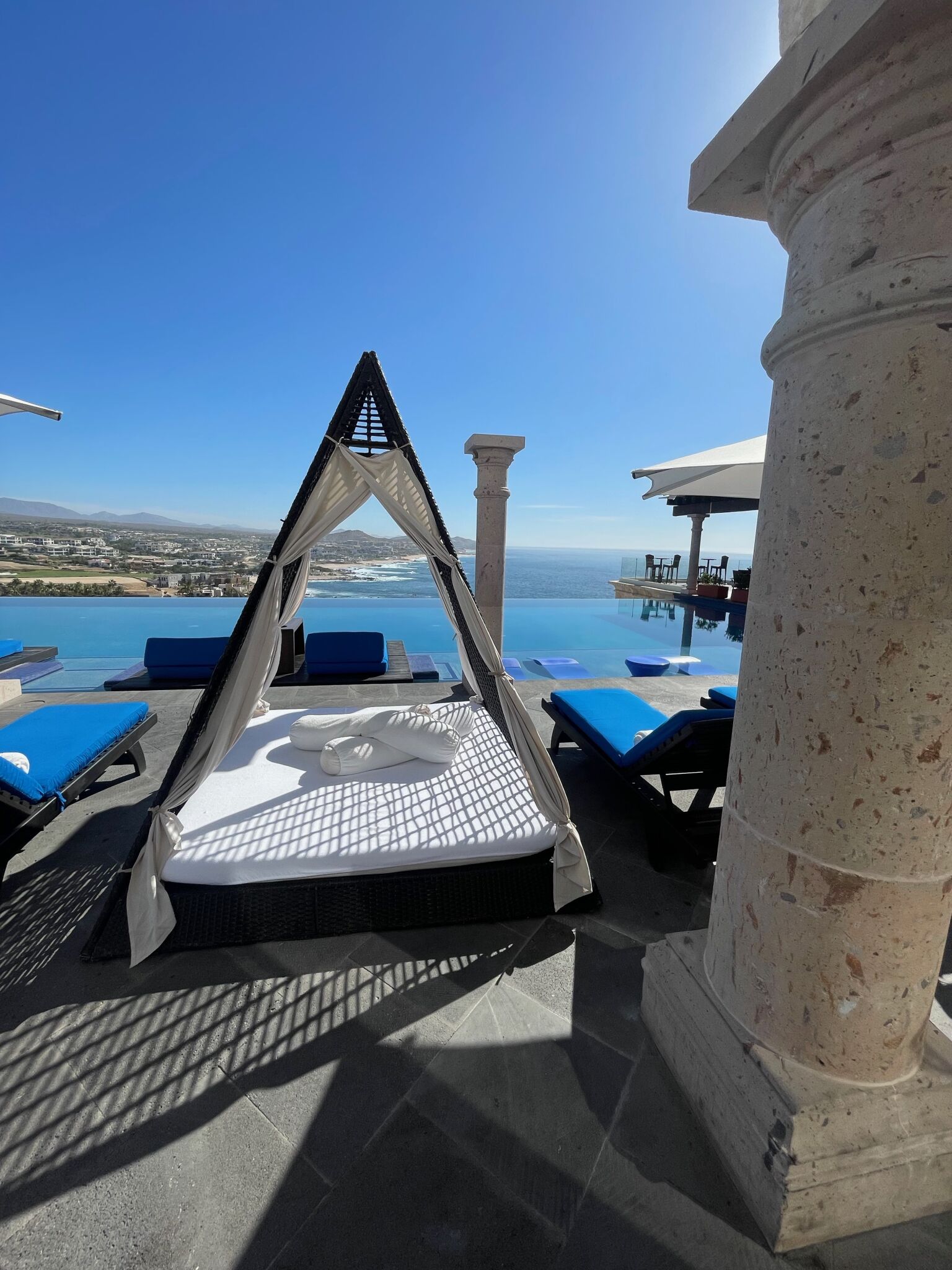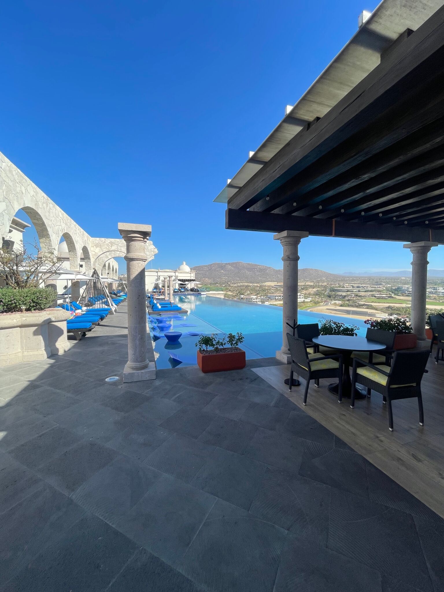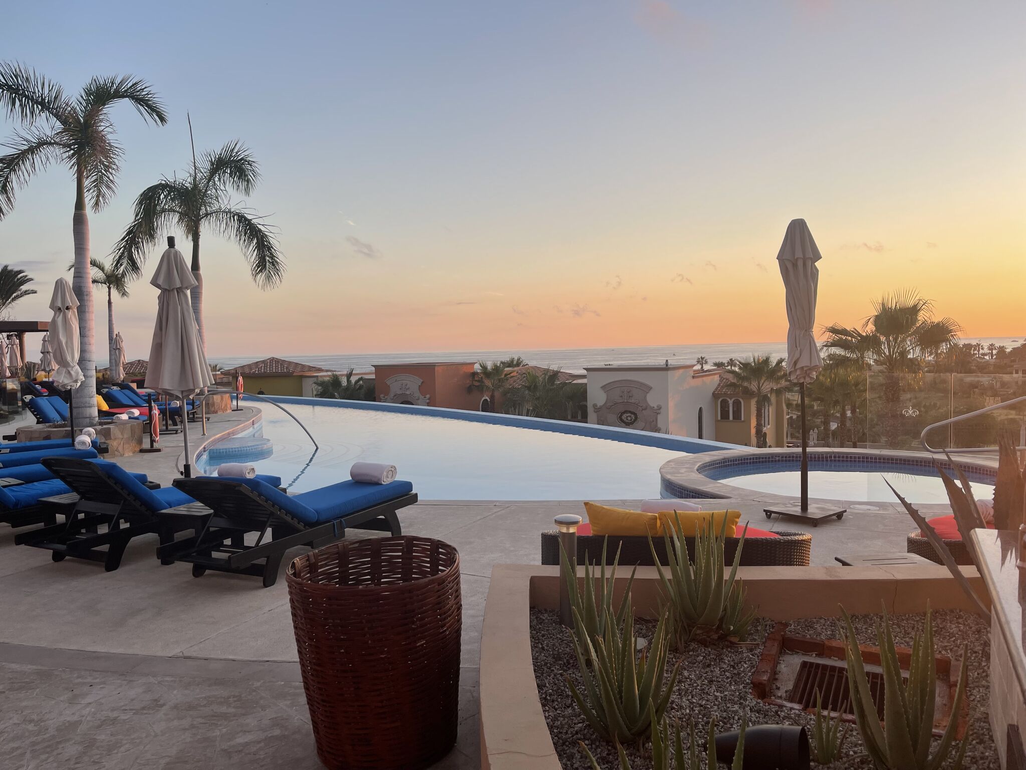 The resort is built on a cliff overlooking the Sea of Cortez with breathtaking views of the famous Land’s End arch to the right, and the San Jose coastline to the left, and during the winter, California grey whales as they frolic in the warm waters with newborn calves.