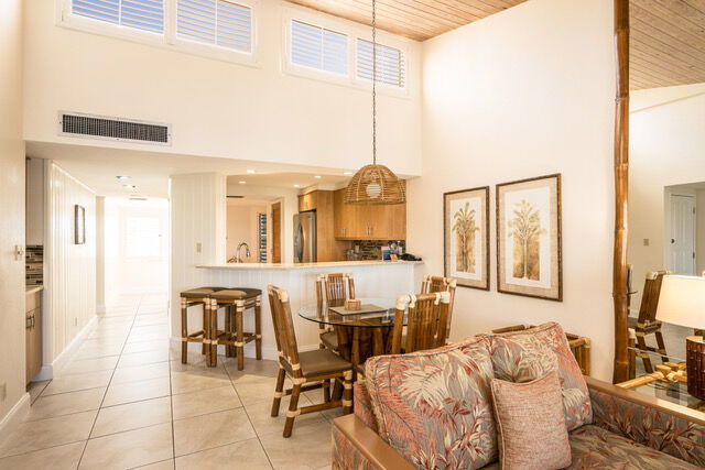 The Galleon Resort offers a multitude of accommodations in studio, one-bedroom and two-bedroom configurations. Studios house two people and are equipped with a small refrigerator, coffee maker and microwave oven. One-bedroom suites sleep up to four while most two-bedroom suites sleep up to six, while both include a full kitchen, dining area and decked out living area. Each is lovingly furnished with sandy earth tones, rattan furniture and tropical prints that perfectly set the mood for your stay in Key West.