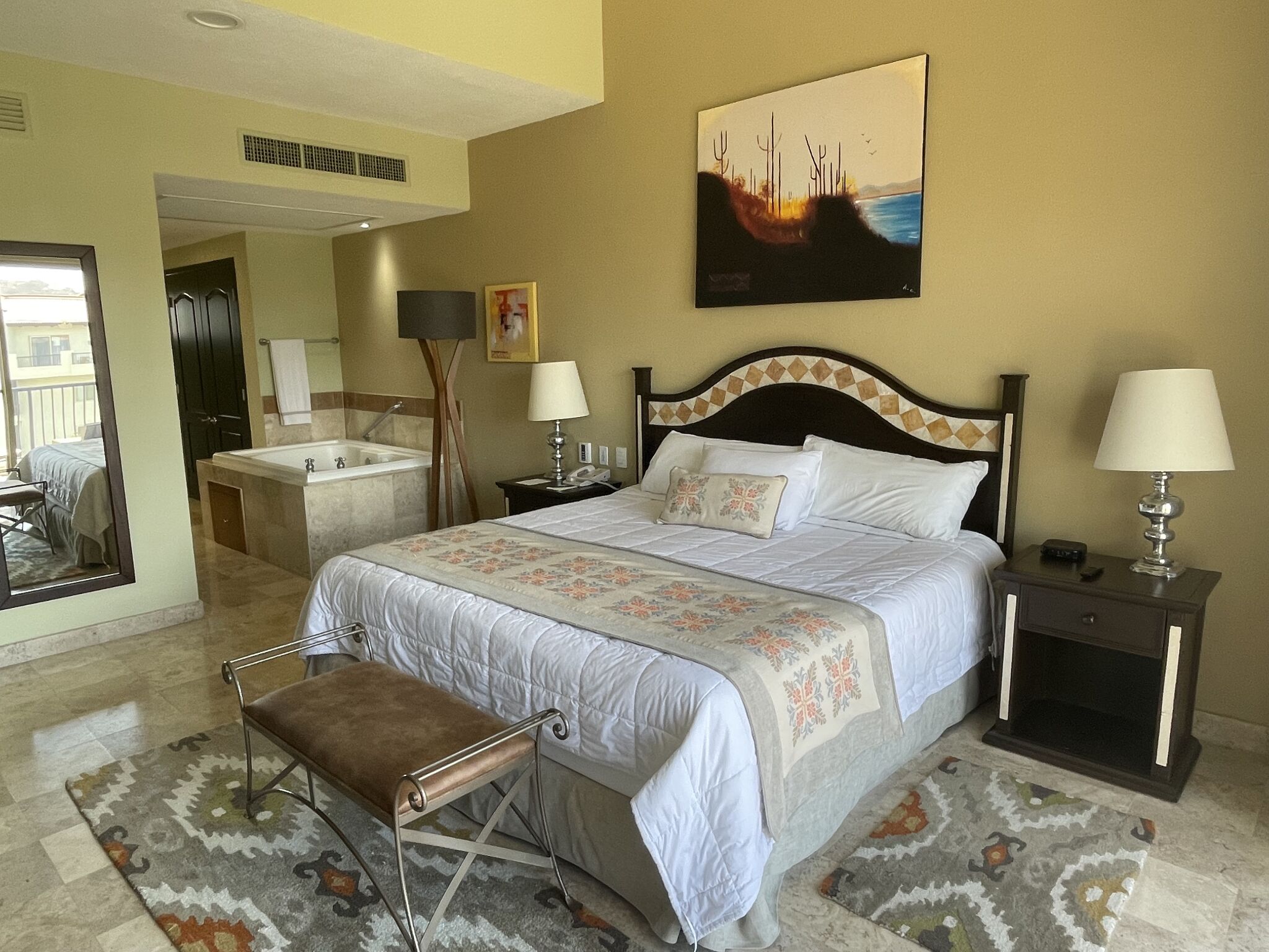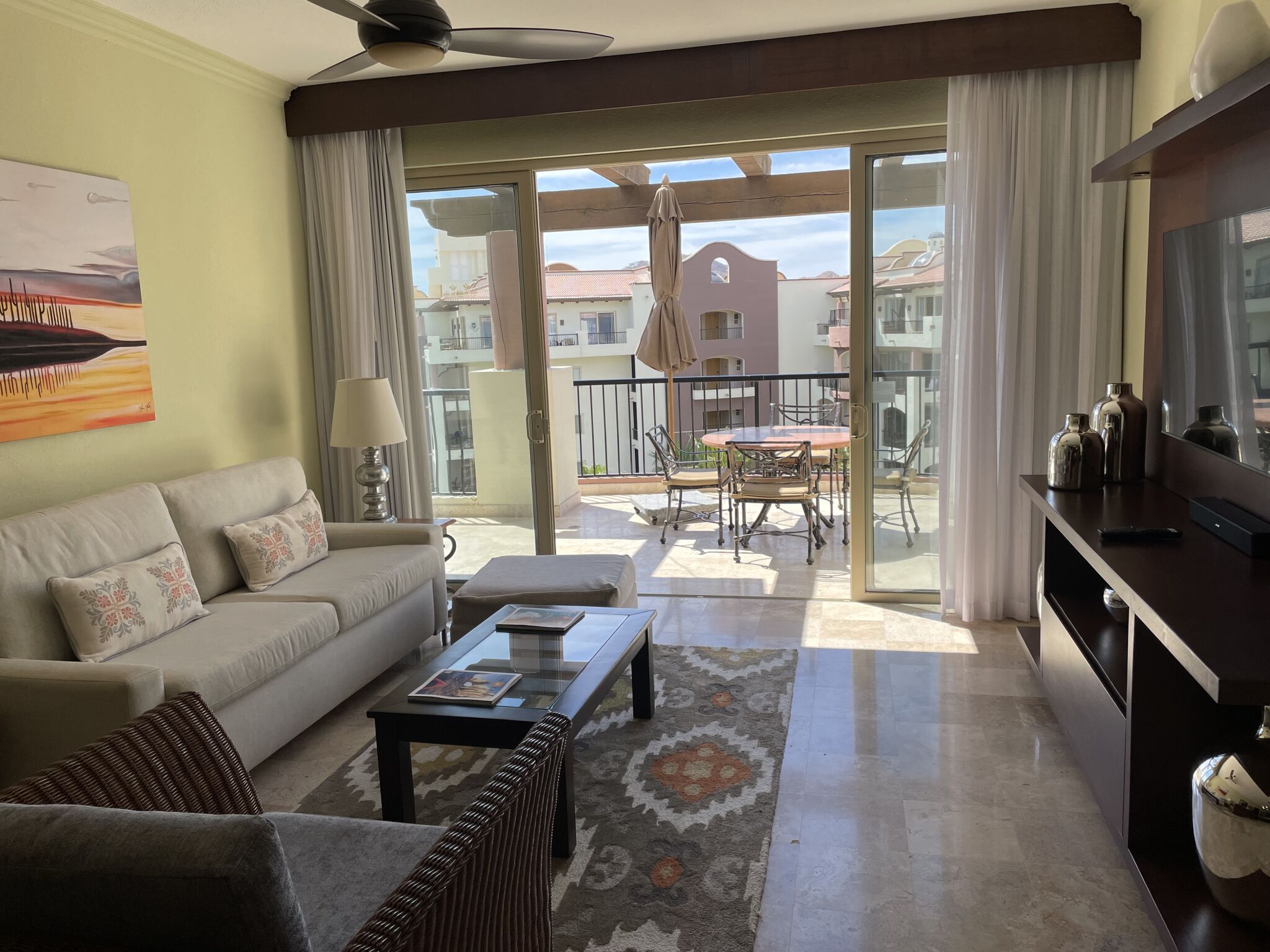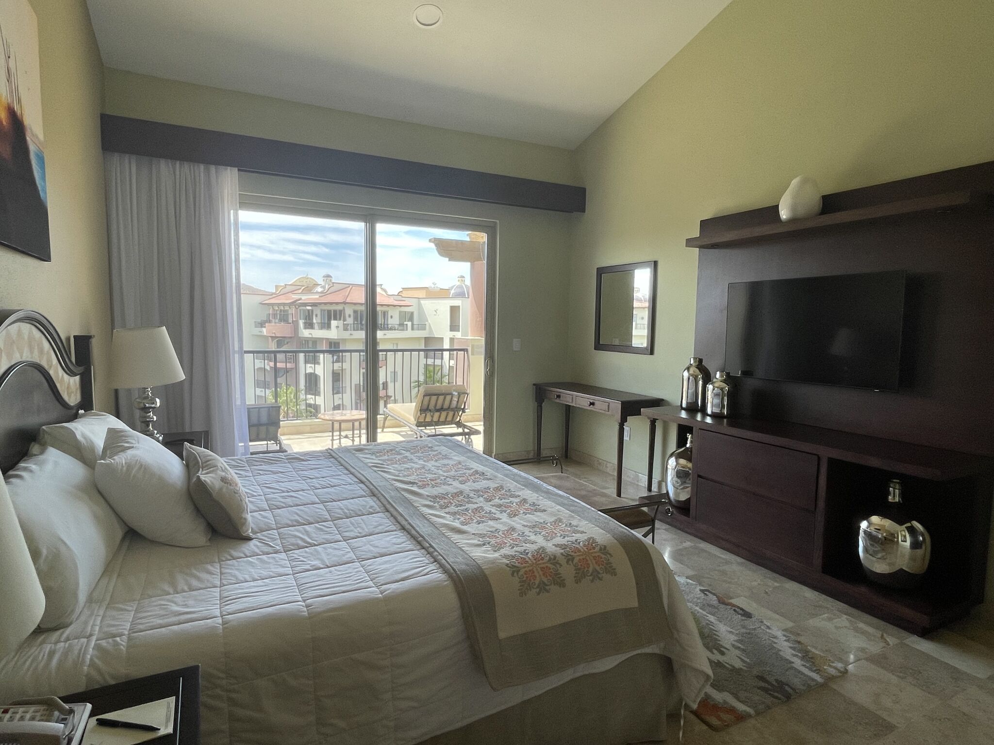 Accommodations at Villa del Arco range from spacious studios to multi-bedroom suites, each elegantly appointed with modern amenities and private balconies. Suites include kitchenettes or full kitchens, separate living and dining areas, and marble bathrooms - many with jetted tubs for extra indulgence. Plush bedding, flat-screen TVs, Wi-Fi, and locale-inspired décor create a comfortable retreat, whether you’re traveling as a couple, family, or group of friends.
