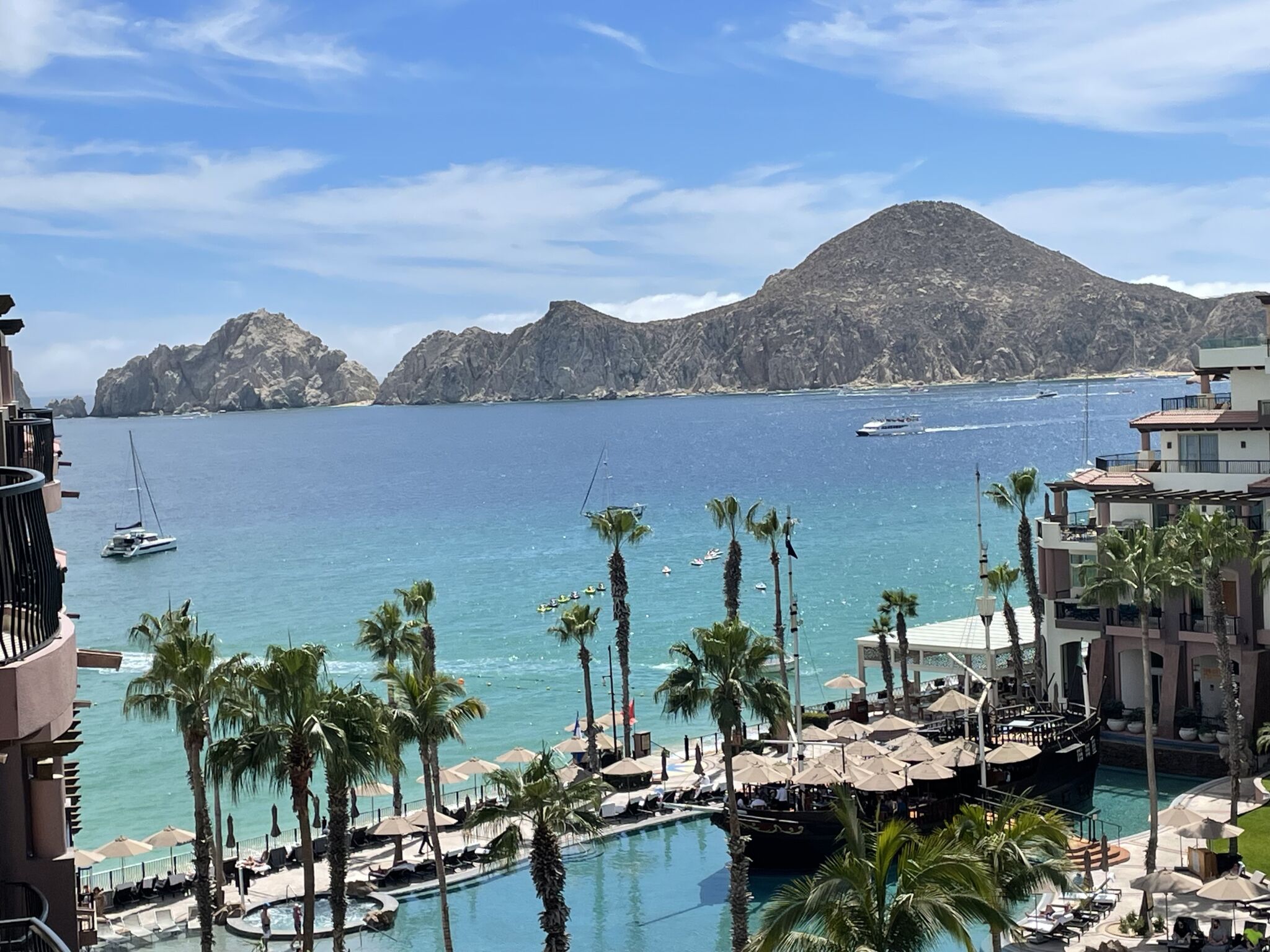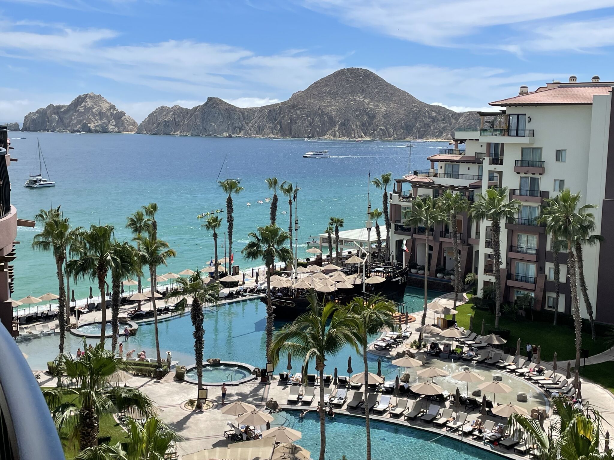 Set along the shores of Medano Beach with stunning views of Land’s End, Villa del Arco Beach Resort & Spa offers a luxurious Cabo San Lucas escape where relaxation meets adventure. The resort features a sparkling beachfront pool with a pirate ship centerpiece, infinity-edge hot tubs, a state-of-the-art fitness center, and multiple restaurants serving everything from casual bites to fine dining. Guests can also indulge in world-class treatments at the Desert Spa, unwind with poolside cocktails, or take advantage of direct beach access to swim or play in the gentle waters of Cabo’s most swimmable shoreline.