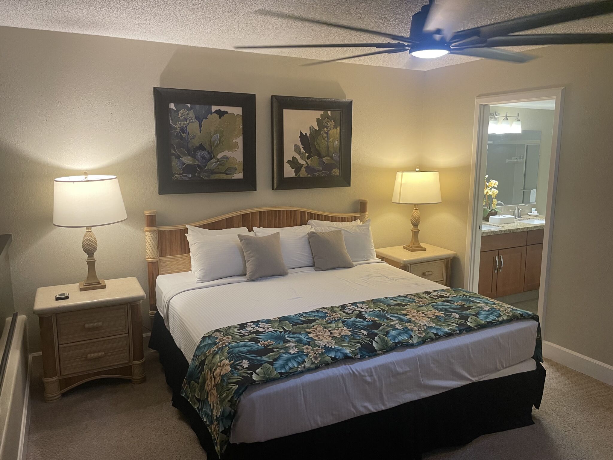 Enjoy returning each day to your luxurious suite with views of the ocean worthy of a postcard! Kahana Villa offers one-bedroom and two-bedroom suites featuring a fully equipped kitchen, in-room washer/dryer and private lanai. All two-bedroom units at this resort are two stories, with both bedrooms upstairs and the living area downstairs. One-bedroom units feature a queen bed in the bedroom and a queen sleeper sofa in the living area. Two-bedroom units feature a king bed in the master bedroom, two twin beds in the guest bedroom, and a queen sleeper sofa in the living area.