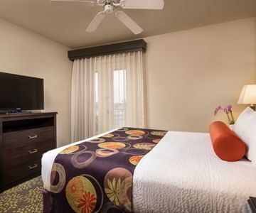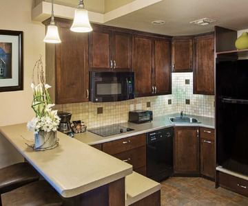 The resort is composed of 122 studio, one and two-bedroom units. Studios include a space features a queen-size pull-down bed, a fully equipped kitchenette, a full bathroom, a sofa, a 37” flat-screen TV and complimentary Wi-Fi access. One and two-bedroom villas feature one or two furnished bedrooms (respectively), one full bathroom, one three-quarter bathroom, a fully equipped kitchenette, two flat-screen TVs, a DVD player, complimentary Wi-Fi access and a spiral staircase to a rooftop patio in select two-bedroom units.