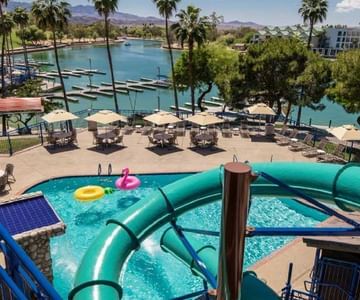London Bridge Resort fuses English Tudor and contemporary design right along the shores of Arizona's magnificent Lake Havasu. Here, you'll find everything needed to enhance your Arizona vacation - London Bridge Resort features an on-site marina and boat dock, water activity equipment rentals, three pools and a whirlpool spa, a splash pool and a 94-foot waterslide, executive 9-hole golf course, The London Bridge Day Spa, three different restaurants/bars (including a poolside bar!), barbecue grilling area, daily activities and more!