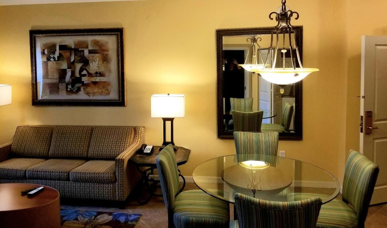 The spacious one- and two-bedroom suites are designed with comfort in mind, featuring fully equipped kitchens, washer/dryer, living and dining areas, and whirlpool tubs. Private bedrooms, sofa beds, and flat-screen TVs make the units perfect for families or groups, while large windows provide views of the surrounding desert landscape. With plenty of room to spread out and all the conveniences of home, The Grandview at Las Vegas makes an excellent base for extended stays.