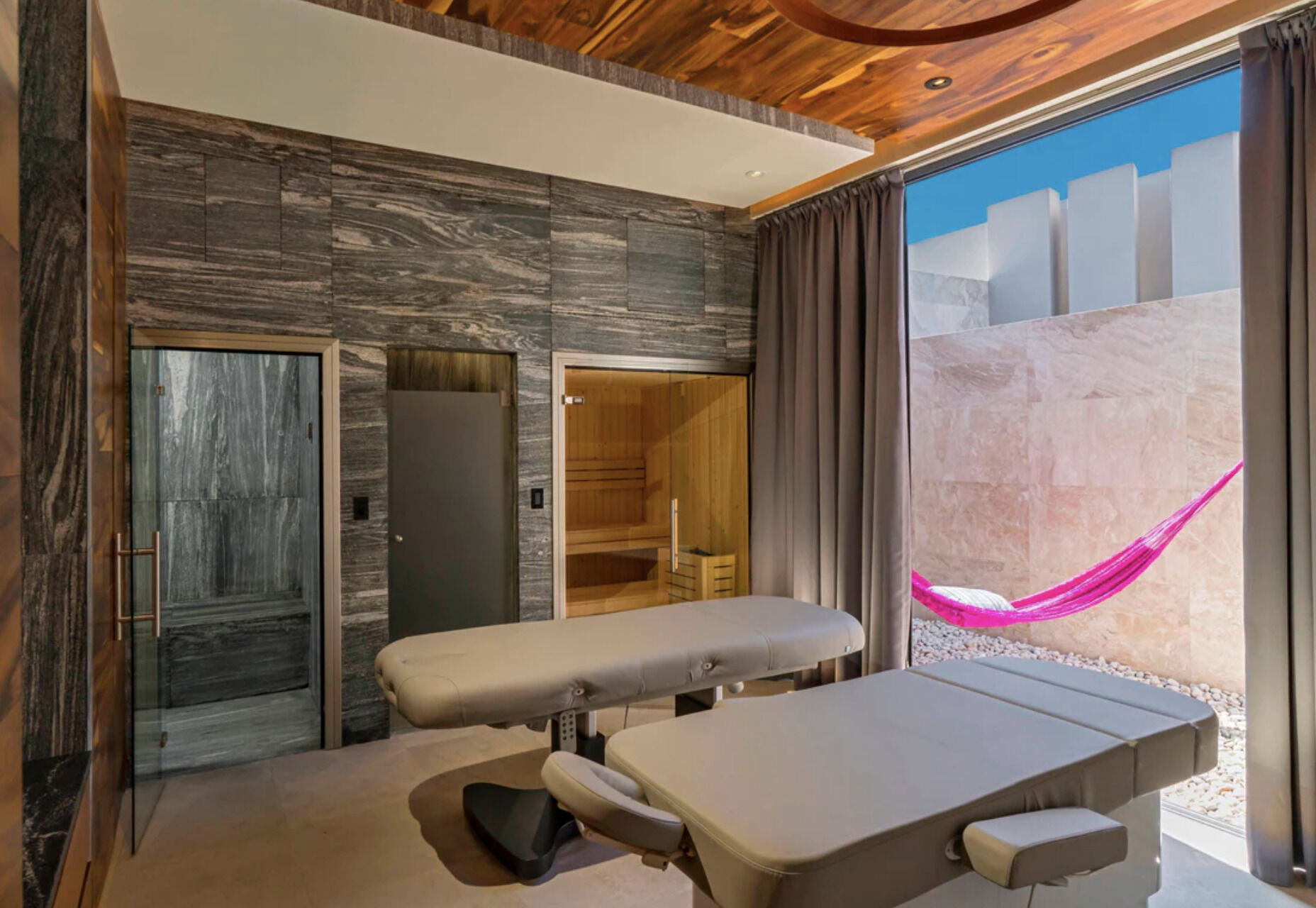The Club at Solaz, Los Cabos embodies the natural splendor and drama of Los Cabos with rooftop gardens, lush landscaping and a unique architectural style that blends into the region's ochre cliffs. Here, you'll enjoy amenities such as two infinity pools, three whirlpools, and a shallow pool contoured by different decks, all overlooking the sea. Another highlight is The Spa at Solaz, equipped with eight individual massage rooms and two VIP double cabins, as well as biothermic rain showers, steam rooms, saunas, whirlpools, a saltwater thalasso wet area and hair and nail salon. Refresh both mind and body in the yoga studio or in the oceanfront-facing fitness center.