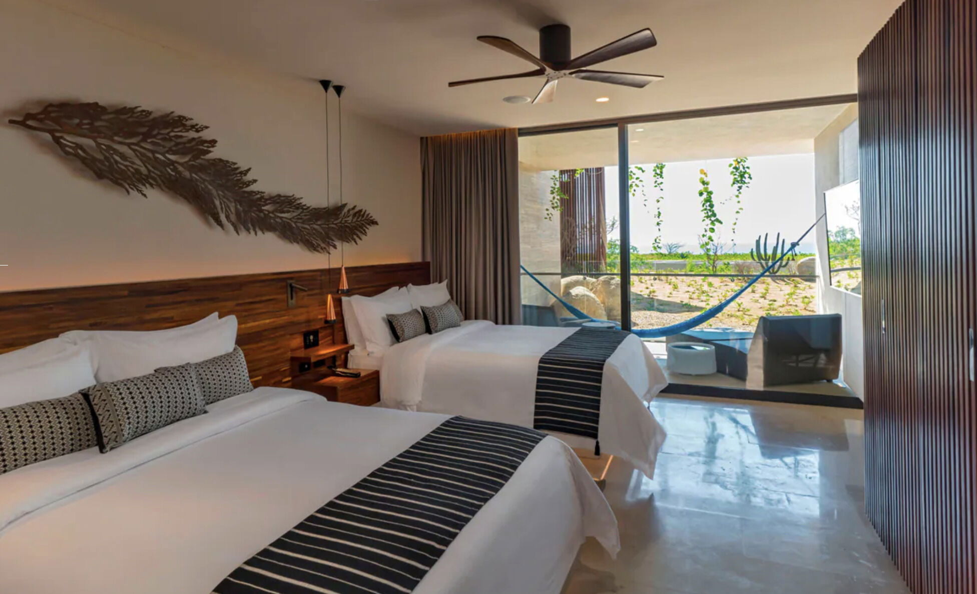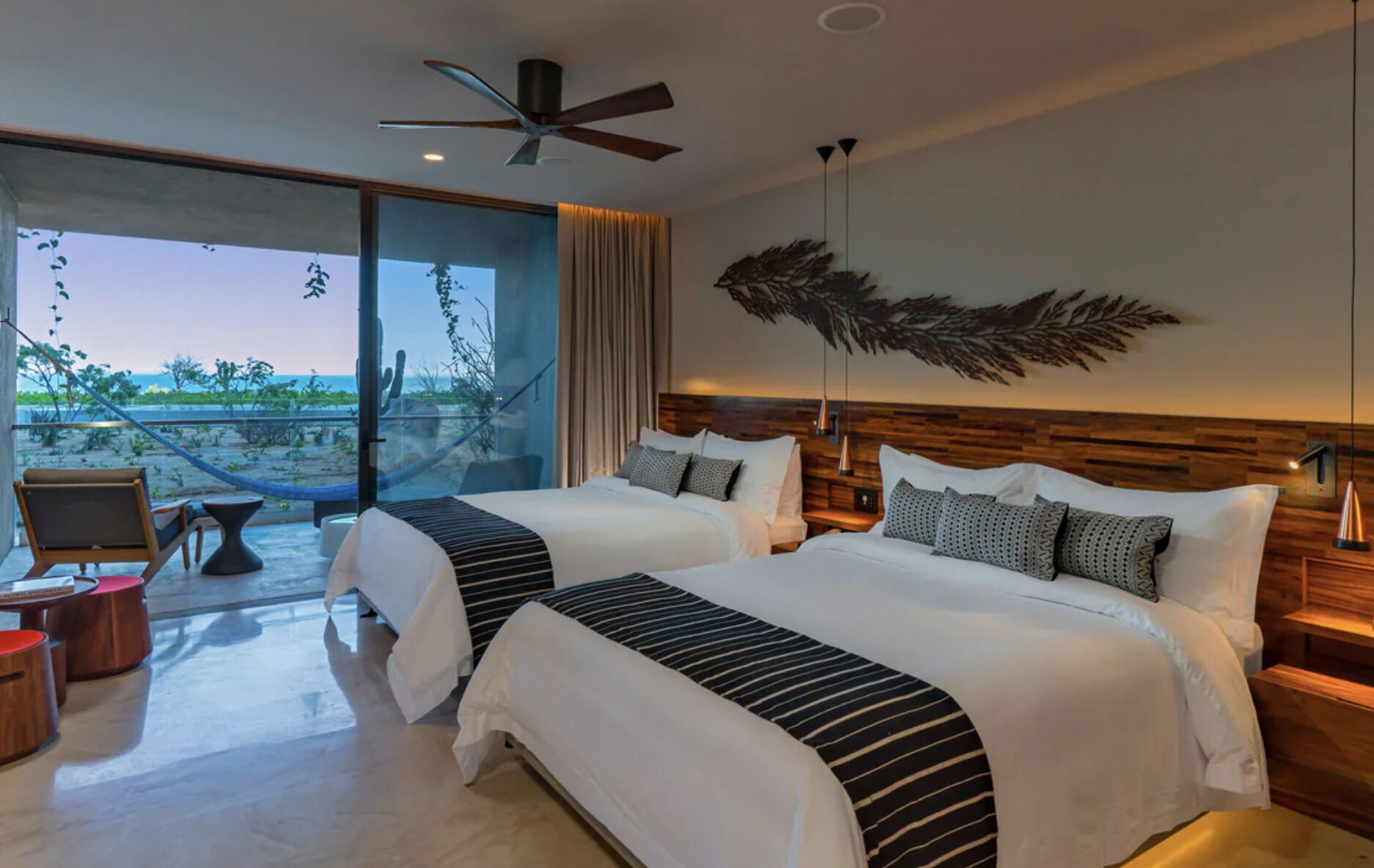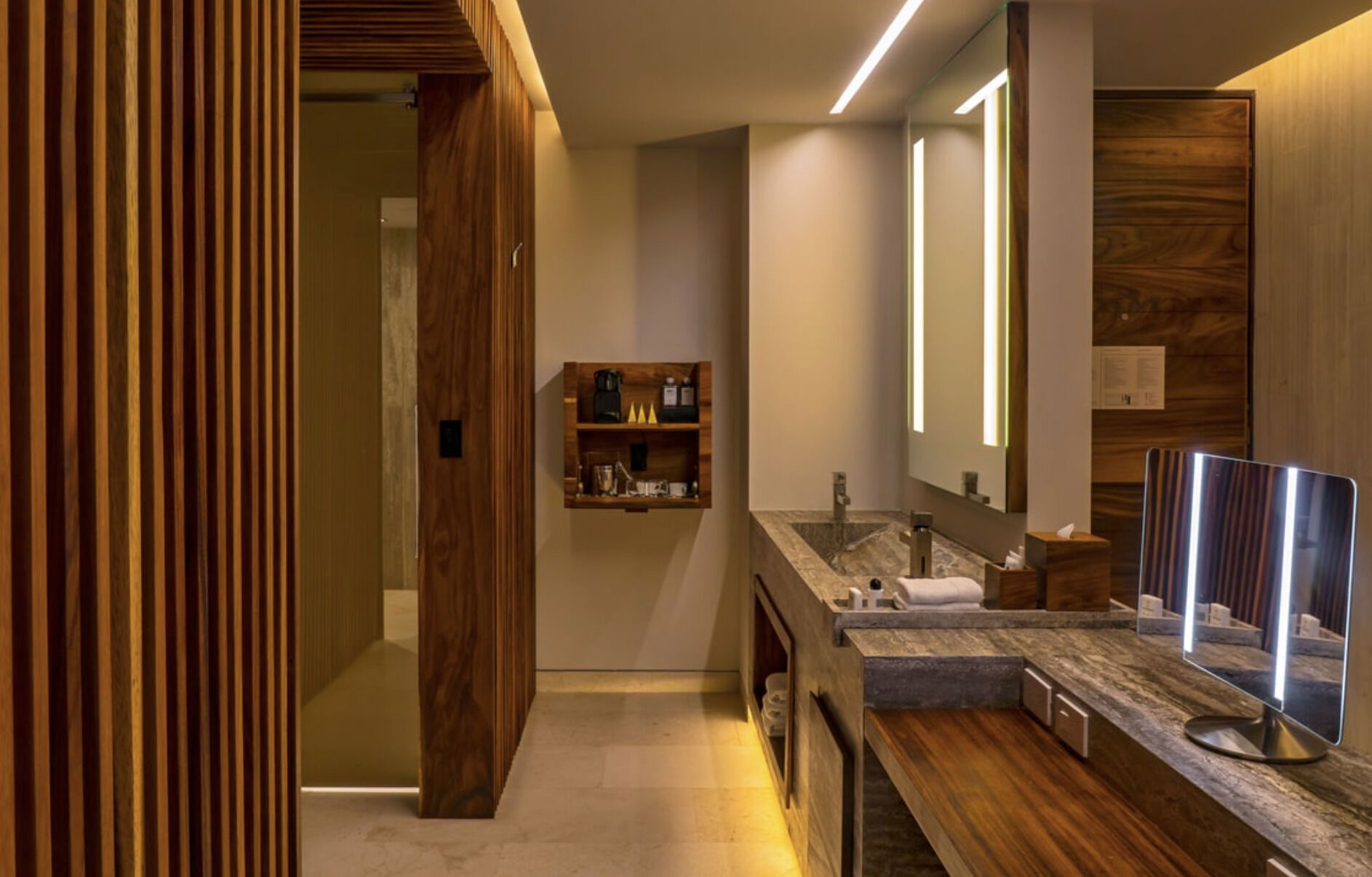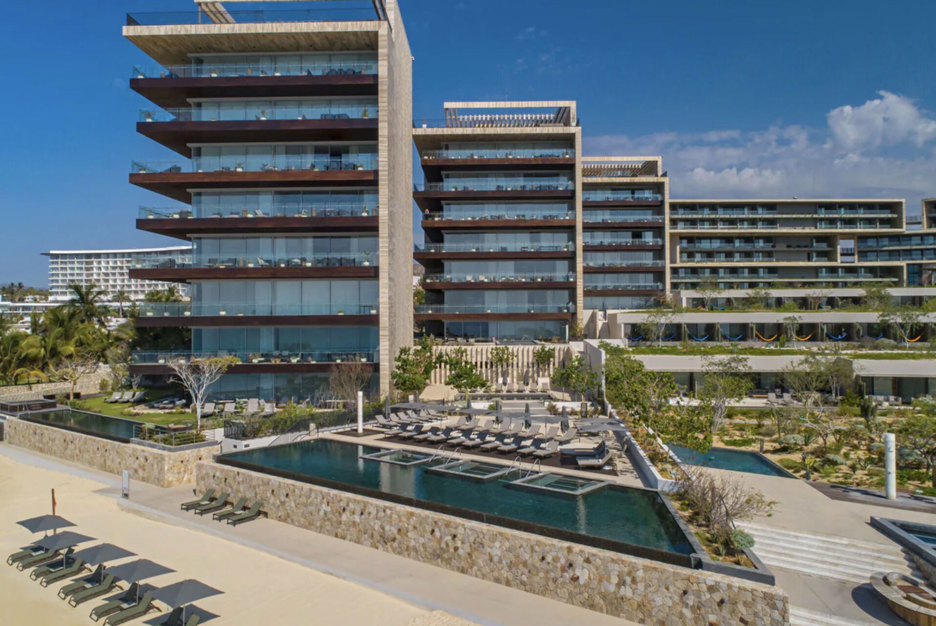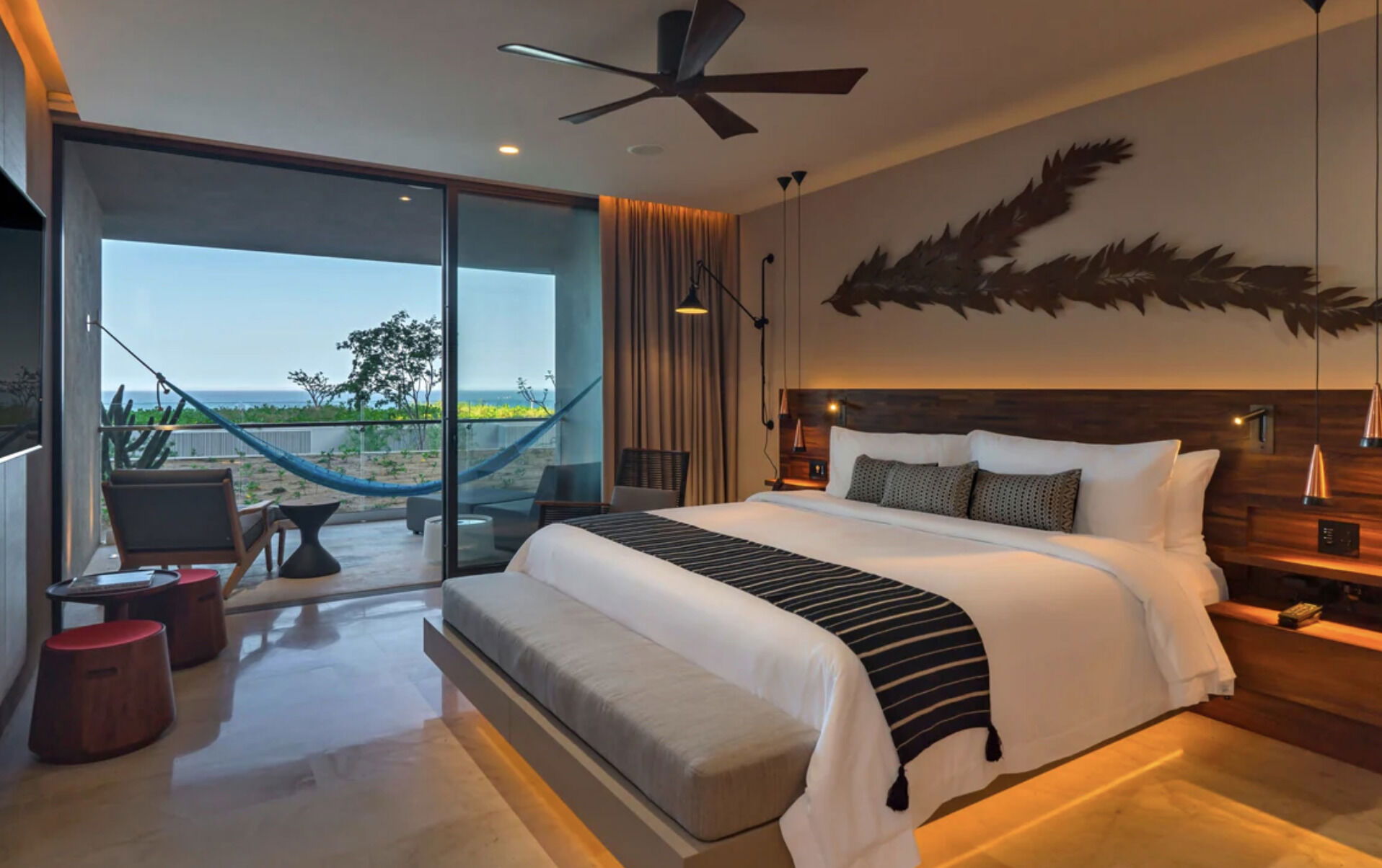 The Club at Solaz boasts 128 guest rooms and suites, all of which overlook the ocean. Whether your opt for a studio room or the prestigious penthouse Presidential Suite, count on upscale interiors that draw from the region's natural beauty with earth tones and wood and granite trimming. Many larger suites offer outdoor terraces feature private pools, whirlpools and fire pits, while three-bedroom residences are distinguished by stunning wraparound terraces.