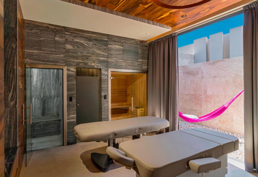 The Club at Solaz, Los Cabos embodies the natural splendor and drama of Los Cabos with rooftop gardens, lush landscaping and a unique architectural style that blends into the region's ochre cliffs. Here, you'll enjoy amenities such as two infinity pools, three whirlpools, and a shallow pool contoured by different decks, all overlooking the sea. Another highlight is The Spa at Solaz, equipped with eight individual massage rooms and two VIP double cabins, as well as biothermic rain showers, steam rooms, saunas, whirlpools, a saltwater thalasso wet area and hair and nail salon. Refresh both mind and body in the yoga studio or in the oceanfront-facing fitness center.