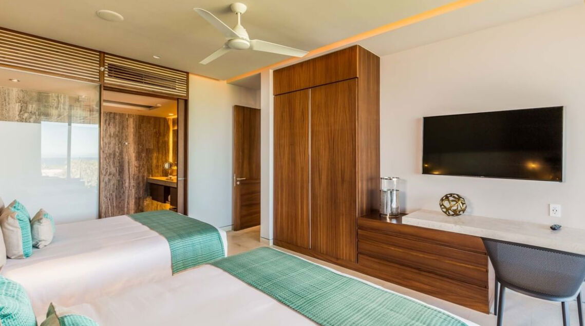 The Club at Solaz boasts 128 guest rooms and suites, all of which overlook the ocean. Whether your opt for a studio room or the prestigious penthouse Presidential Suite, count on upscale interiors that draw from the region's natural beauty with earth tones and wood and granite trimming. Many larger suites offer outdoor terraces feature private pools, whirlpools and fire pits, while three-bedroom residences are distinguished by stunning wraparound terraces.