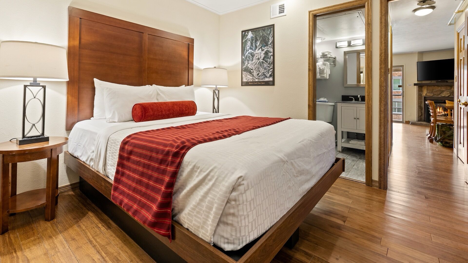At The Christie Lodge, you'll enjoy coming back to your one or three-bedroom villa at the end of the day. Each suite features a kitchenette, dining table, fireplace, queen-sized bed, queen-sized sleeper sofa, child size daybed, television, telephone, balcony or patio and complimentary Wi-Fi access. One-bedrooms are well-suited for four guests, while three-bedrooms can accommodate up to eight.