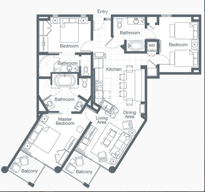 The number of unit bathrooms as well as unit bedding may vary.