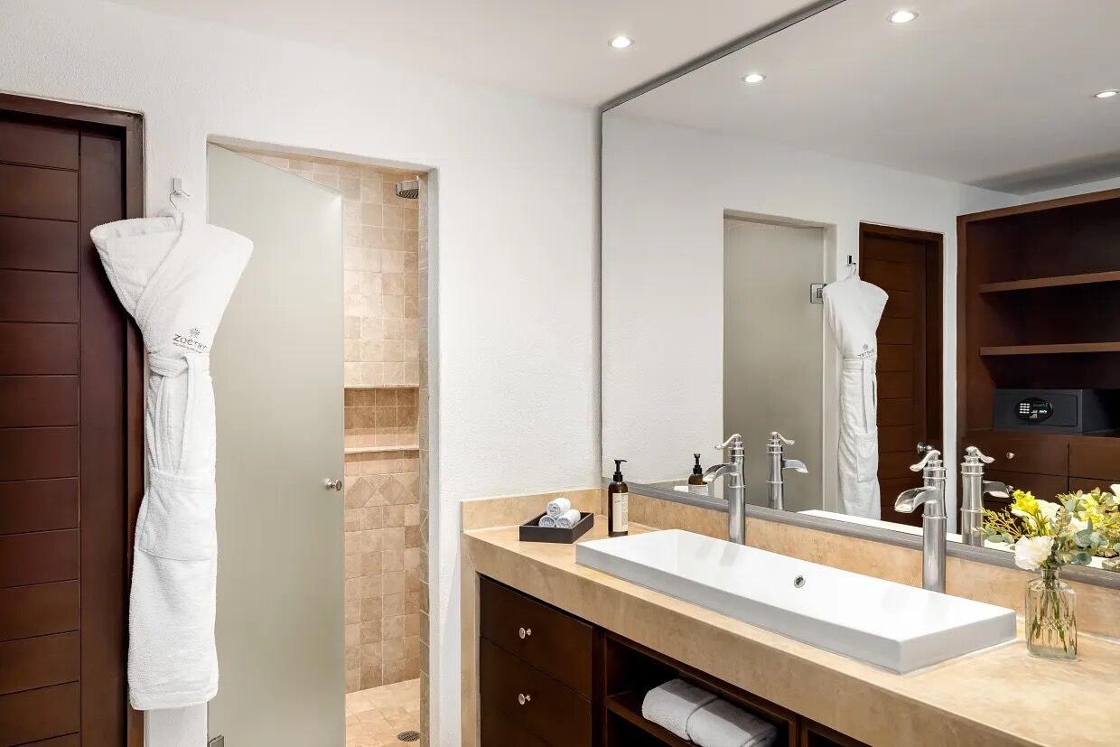 Two and three-bedroom villas are sleek, modern and bedecked with unique decorations and furniture that seamlessly blend the minimalist with authentic Mexican aesthetic. Enjoy spacious dining and living areas, private heated plunge pool, plush linens and bedding, Italian kitchens featuring granite countertops and German appliances, full laundry facilities and cutting-edge tech in-room with Wi-Fi, flat- screen TV's, digital phone keys and USB ports aplenty. Don't forget oversized, furnished balconies and terraces boasting brilliant ocean views!