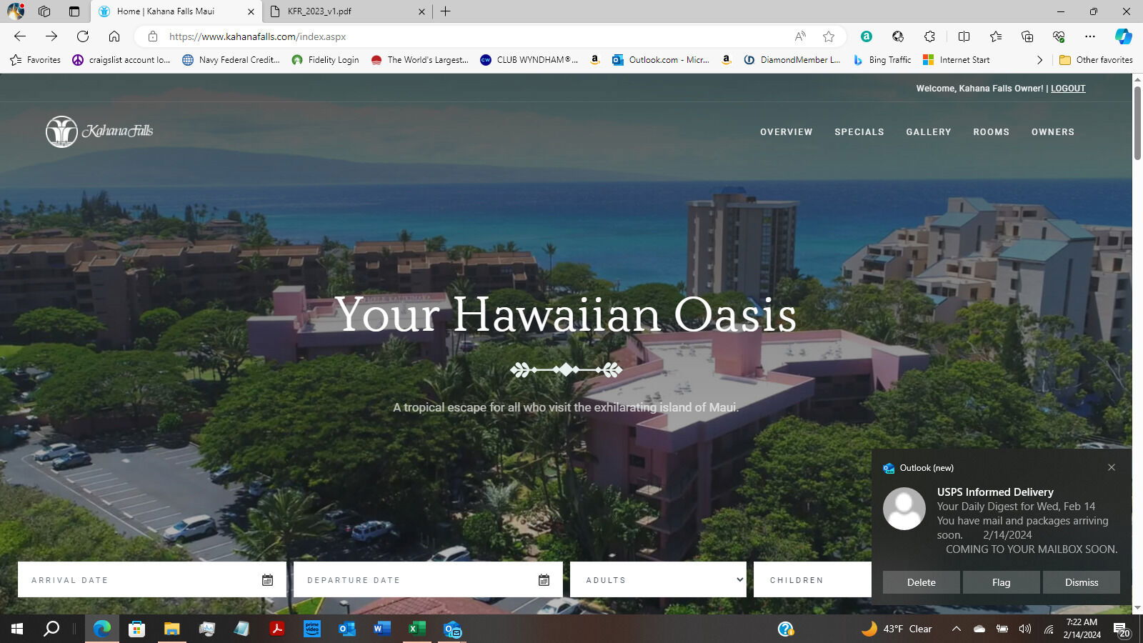 Set in the charming town of Lahaina, Kahana Falls offers beauty, comfort and a unforgettable tropical escape for all who visit the island of Maui! Relax and let go of your day-to-day worries at this beautiful resort - take a dip in the free- form swimming pool and enjoy the peaceful sound of the waterfalls surrounding you. Warm up in the sandy-bottomed whirlpool after a great workout in the fitness center. Kahana Falls' on-site Paradise Activities desk will help you see the best of Maui.