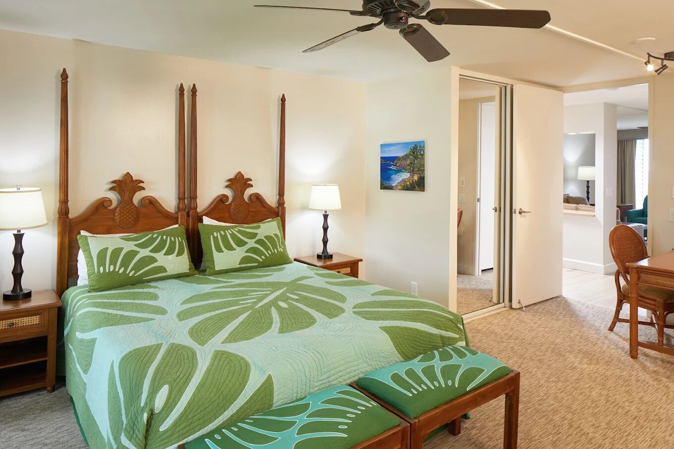 The Cliffs offer the quiet privacy and comforts of spacious suites in both one-bedroom and and one-bedroom loft configurations. Each suite is tastefully adorned with upscale, Polynesian furniture and authentic Hawaiian decor and feature familiar comforts such as a fully-equipped kitchen with granite countertops, two full bathrooms, two private lanais, separate living area and a private master bedroom.