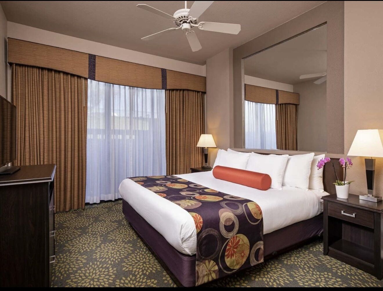 The resort is composed of 122 studio, one and two-bedroom units. Studios include a space features a queen-size pull-down bed, a fully equipped kitchenette, a full bathroom, a sofa, a 37” flat-screen TV and complimentary Wi-Fi access. One and two-bedroom villas feature one or two furnished bedrooms (respectively), one full bathroom, one three-quarter bathroom, a fully equipped kitchenette, two flat-screen TVs, a DVD player, complimentary Wi-Fi access and a spiral staircase to a rooftop patio in select two-bedroom units.