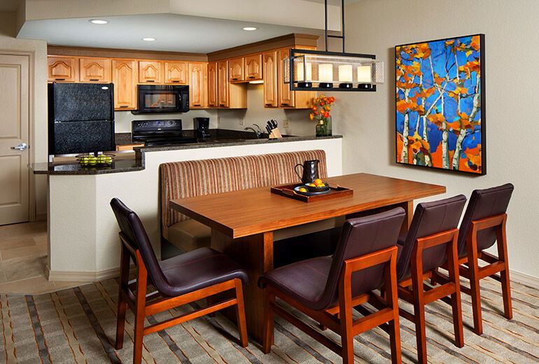 Your retreat at Sheraton Lakeside Terrace Villas is a stylish two-bedroom villa that's perfectly suited for up to eight. Each spacious villa offers private balconies or patios with gas grills, cozy gas fireplaces in both the living area and master bedroom, and even two-person whirlpool bathtubs. Convenient features such as a fully equipped kitchen, separate den with workstation, flat-panel TVs, DVD players, a Bose AM/FM Wave radio and a washer and dryer also complement your mountain stay, making every moment of downtime almost an indulgence!